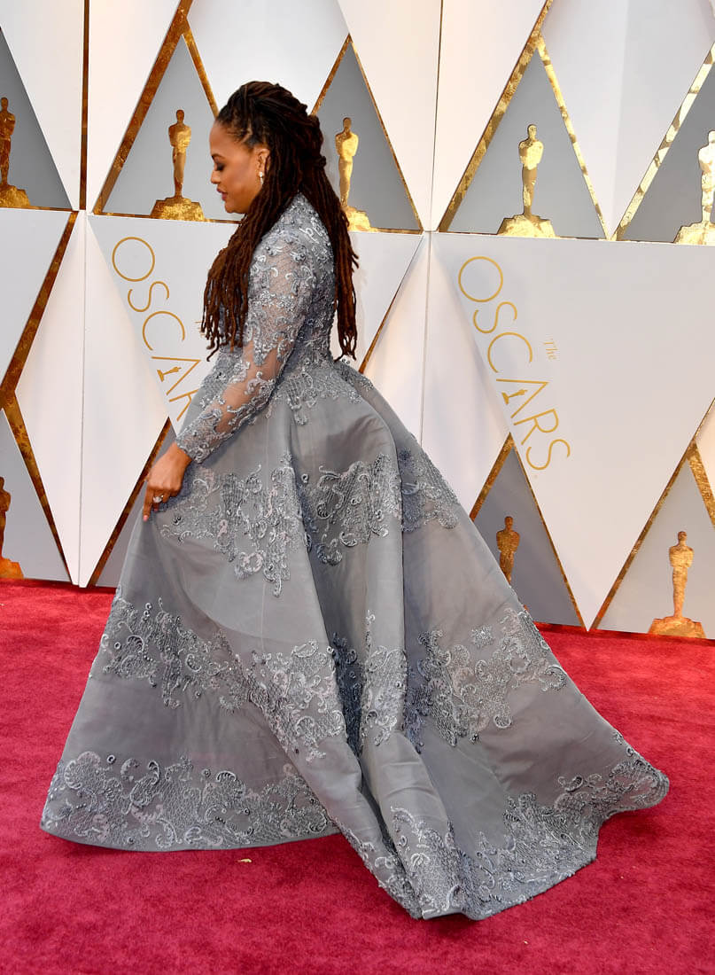 A small sign of solidarity. I chose to wear a gown by a designer from a majority Muslim country. Thanks to @AshiStudio of Lebanon. #Oscars pic.twitter.com/CbEkK7rCpG— Ava DuVernay (@ava) February 27, 2017