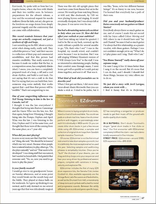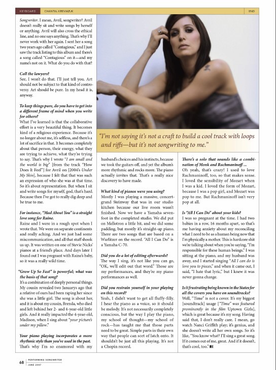 In an interview with Performing Songwriter, Chantal is asked about working with Avril. Chantal does NOT mince words: