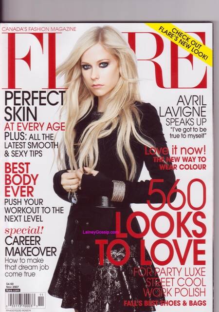 First things first, fair is fair – Avril looks STUNNING in the November issue of Flare. Absolutely beautiful. She has a great nose, great bone structure, and I love her blonde hair…it’s really too bad she’s such a punk ass poseur bitch.
