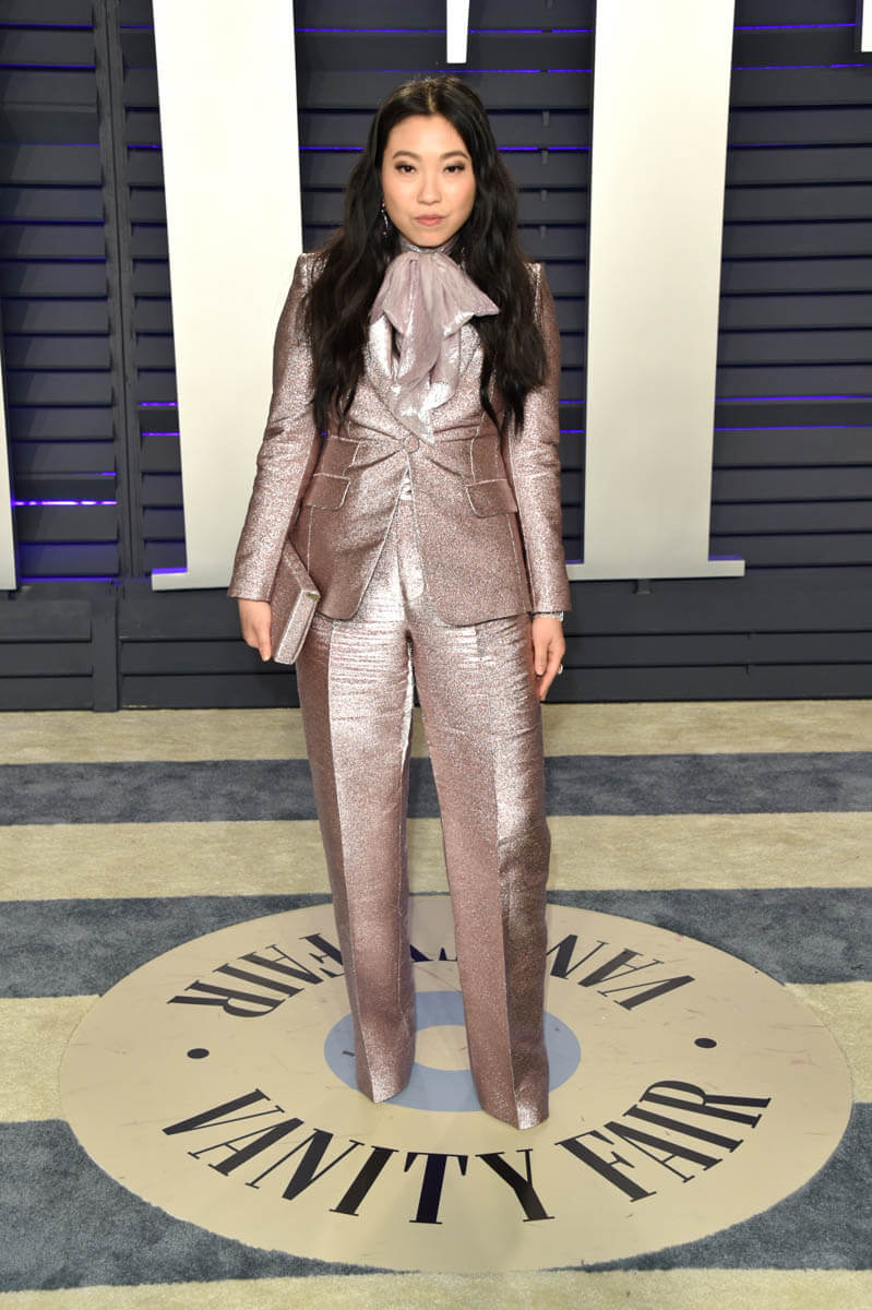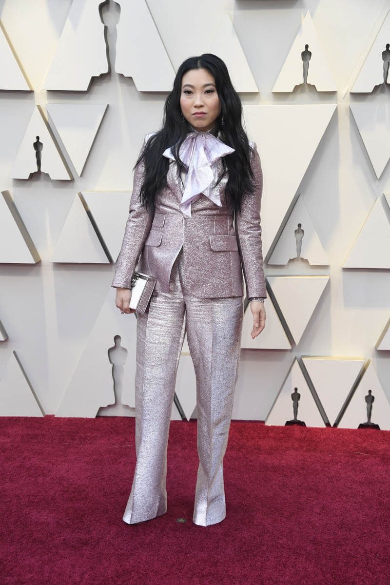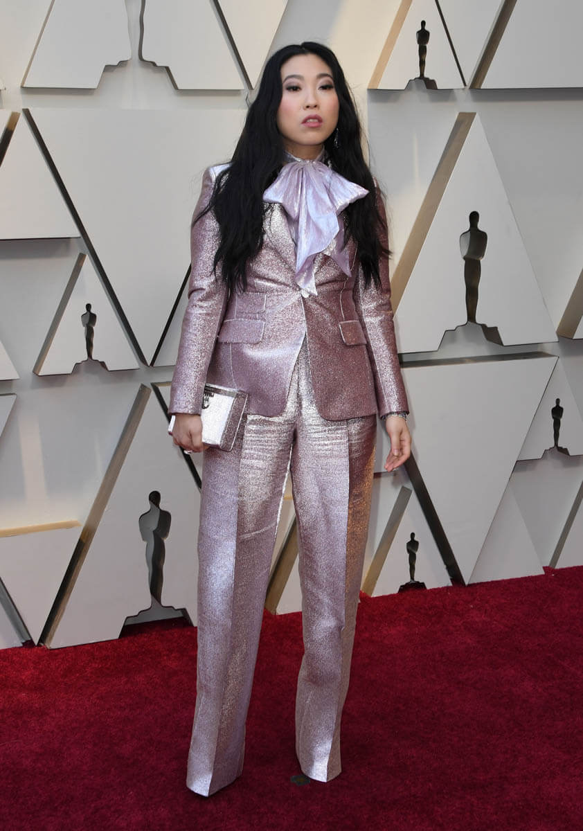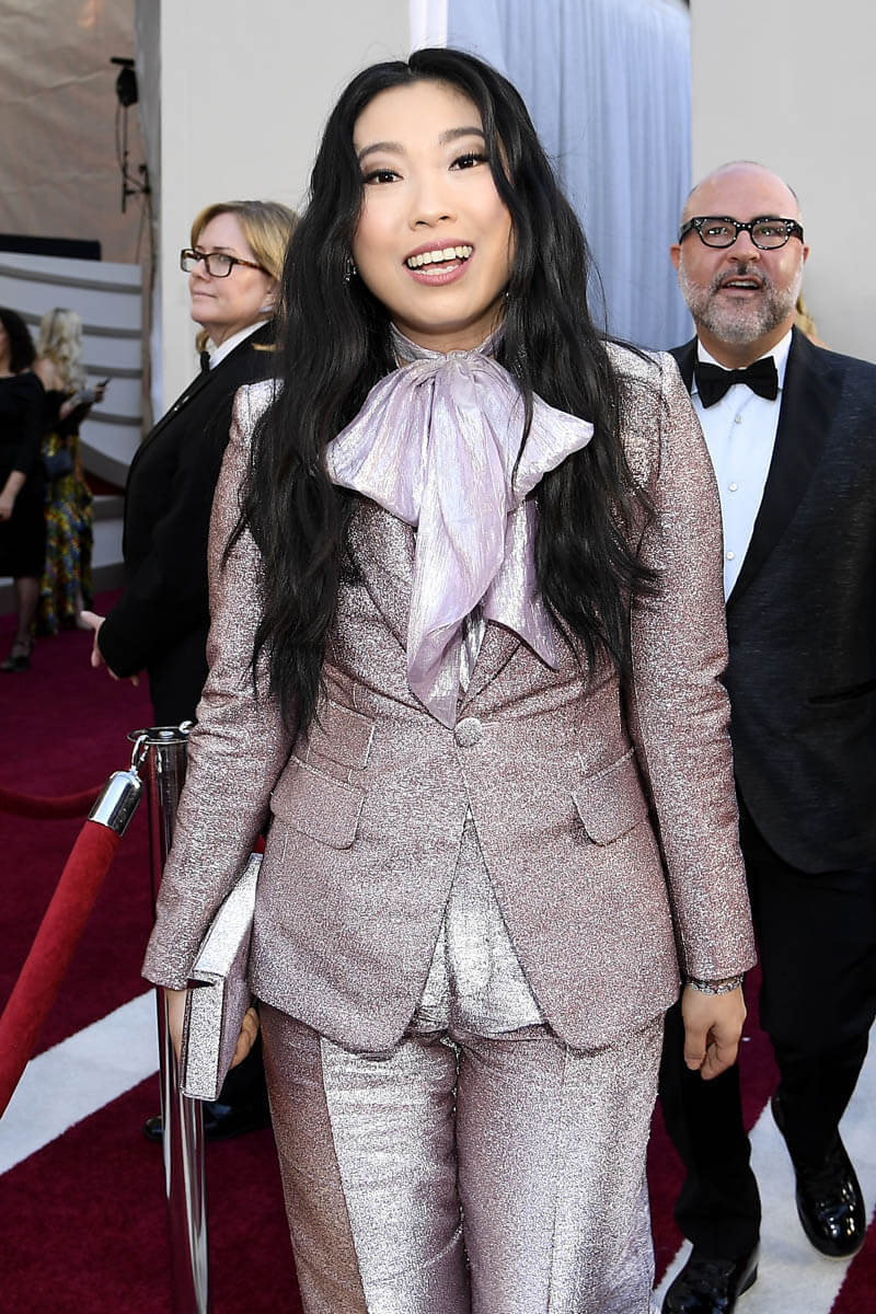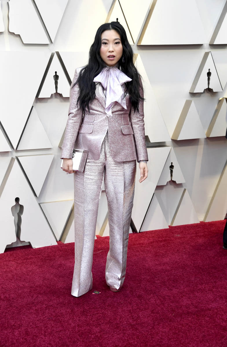 But this suit says that Awkwafina is a grown woman, one who likes precision, and who is in a position to choose her next roles very carefully. Read the signs in the sparkly lilac, and underestimate her at your peril. That Mary Tyler Moore bow is a code that says the next few years are going to be very, very interesting in the next phase of Awkwafina, and it’s exciting because I feel very strongly that she’s in total control.