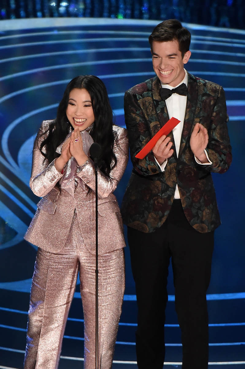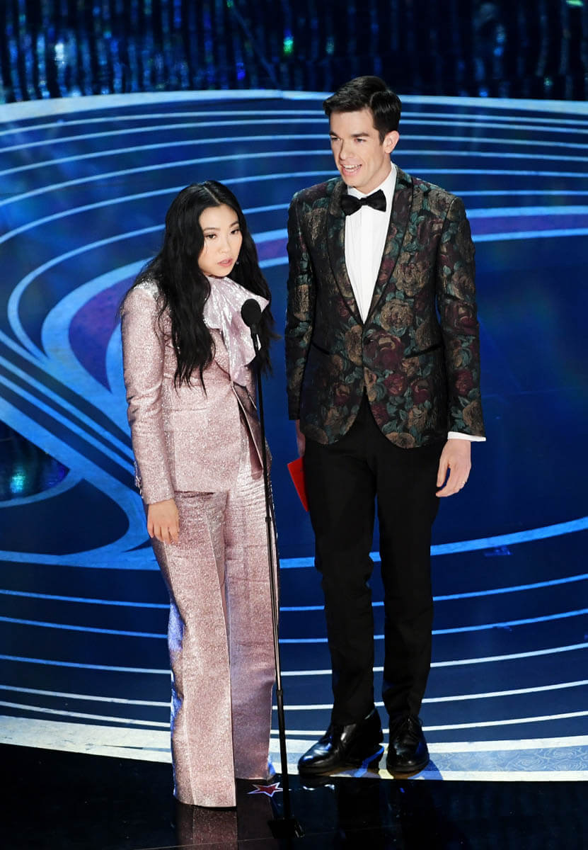 I remember thinking last night how lucky it was that Awkwafina didn’t happen to wind up in the trend of pinks. Like I’ve been saying all day, I love all those deep pinks and roses we saw last night, and if I were styling Awkwafina in a bubble, I’m sure that would have been one of the colours I reached for. There are some people you can go intense with, colour-wise and I’d imagine you’d want to take advantage – you’re sure as hell not going to get that colour on Amy Adams, right?