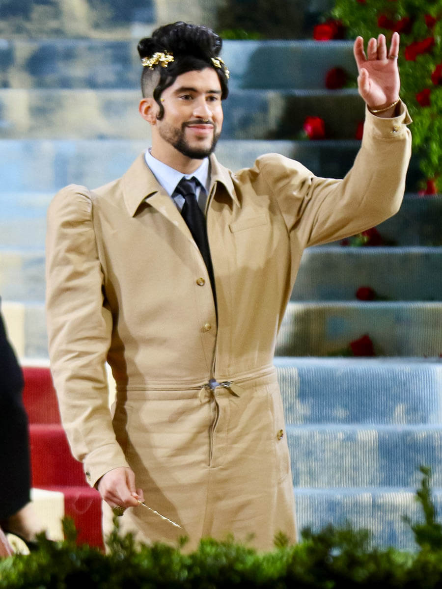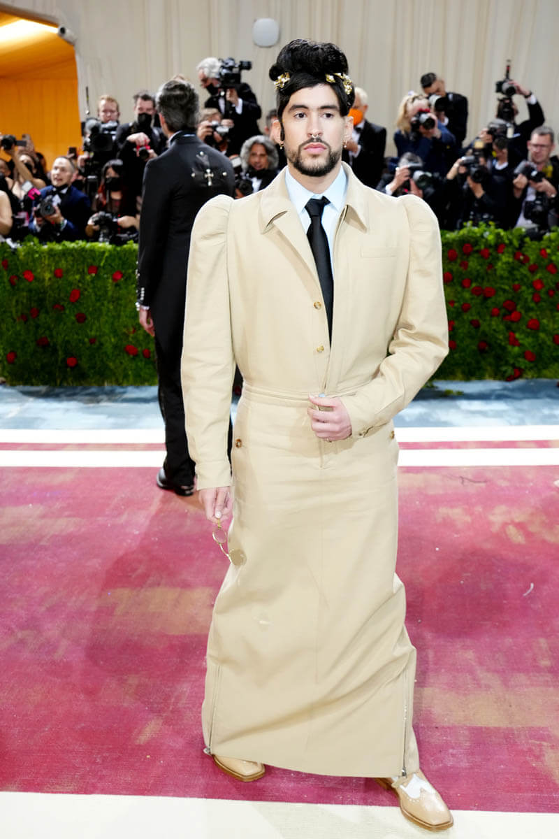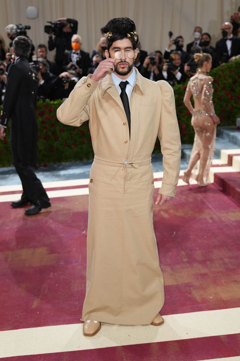 For Bad Bunny, not only is this one theme with all the design detailing of the Gilded Age, and the hair and the accessories, the outfit also fits into his personal aesthetic. He’s been seen in crop tops and skirts, he loves getting his nails done, he’s been showcasing a fluidity in his style for a while – so his look at the Met Gala is not new in terms of where he identifies his fashion personality. What’s new, of course, is the actual outfit, made specifically for him and his preferences by Riccardo Tisci: