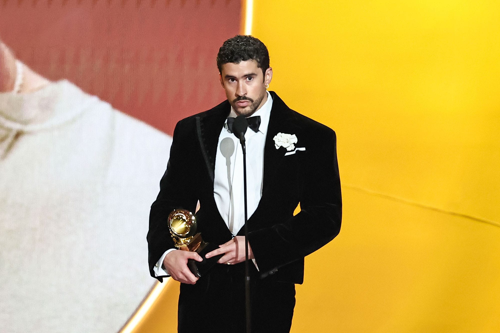 There’s one artist who remained at the centre of the conversation for the entirety of the Grammys last night, and he wasn’t even contractually allowed to perform at the ceremony. His name is Bad Bunny, but most of us who like to think (or dream) that we know him better than that refer to him by his real name: Papi, I mean… Benito. Oops!
