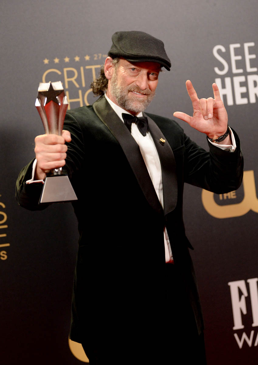 What is looking the most settled are the supporting actor categories. Troy Kotsur and Ariana DeBose both won, again, at both the BAFTAs and the CCAs. Kotsur gave another lovely speech, cracking a joke about being the first deaf double-oh, and then citing the accessibility appointments of the BAFTAs, with sign language interpreting available on a screen in the room, and further thanking the CODA producers for putting burn-in captions on the film on Apple TV+, which are screen captions that cannot be turned off, unlike subtitles. It’s also nice to see how many people are picking up silent applause, there’s more and more at every awards show.