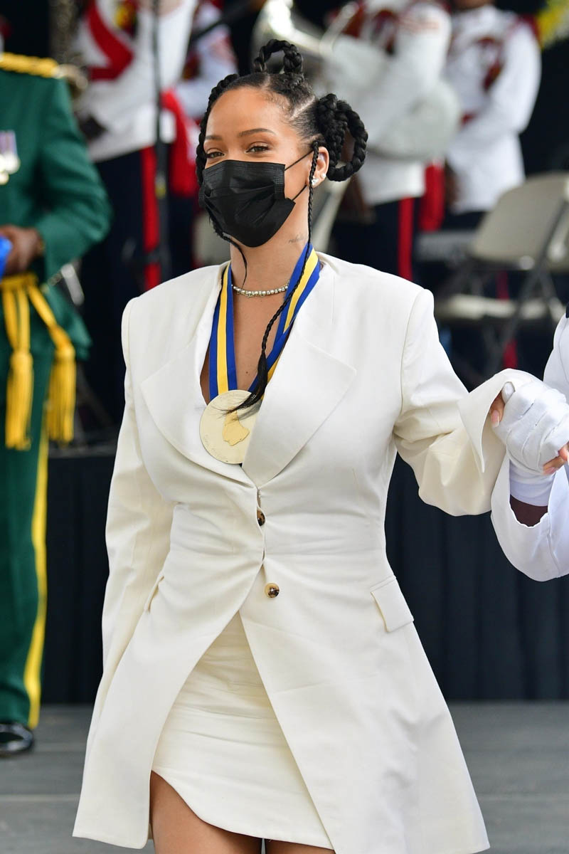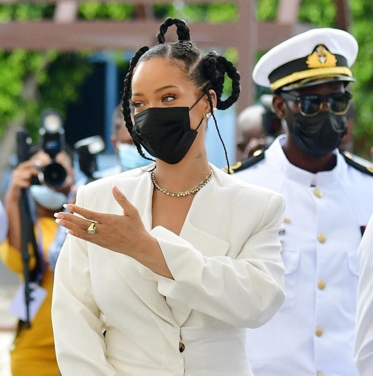 Rihanna was named a National Hero in her home country Barbados, the world’s new republic, the other day. Yesterday she was presented with her medal during a ceremony attended by, among others, Prime Minister Mia Mottley, and introduced as the “Right Excellent Robyn Rihanna Fenty”.