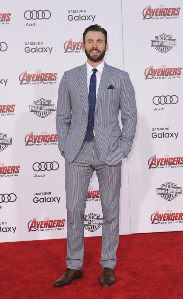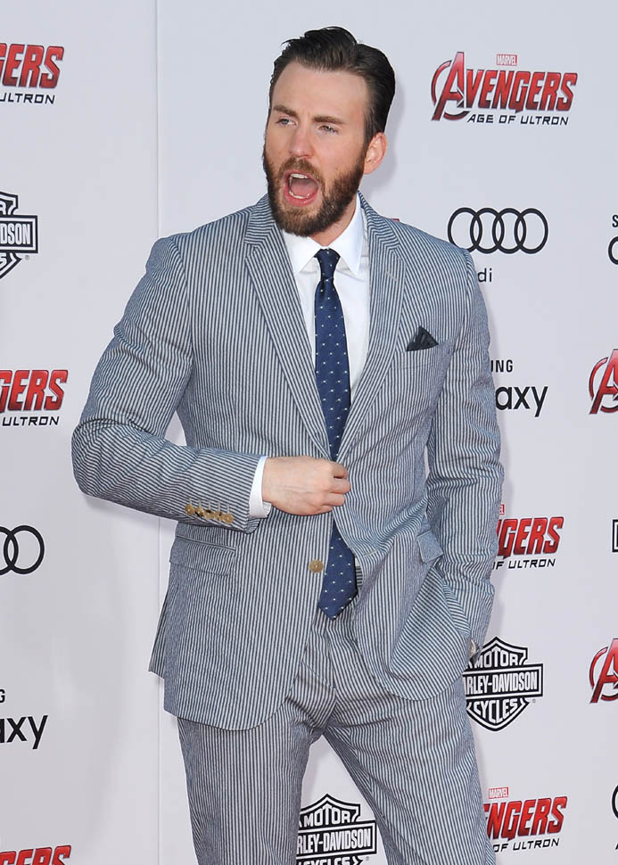 Evans was unusually…let’s call it “peppy”, on the red carpet. Usually he’s Mr. Anxiety at these things, despite being in the industry for over a decade at this point (seriously, what’s the cut-off for adjusting to the reality of your line of work? Three years?). But last night he was, um, super peppy. I heard from a couple different people orbiting the Avengers yesterday and on the spot consensus was that he was pretty lubricated by the time he hit the carpet. And Jeremy Renner was tweeting about tequila backstage at Jimmy Kimmel before the premiere, which is maybe a joke, but Renner was pretty loosey-goosey as well. Here’s a peppy interview with Beardy Chris Evans. Draw your own conclusions.