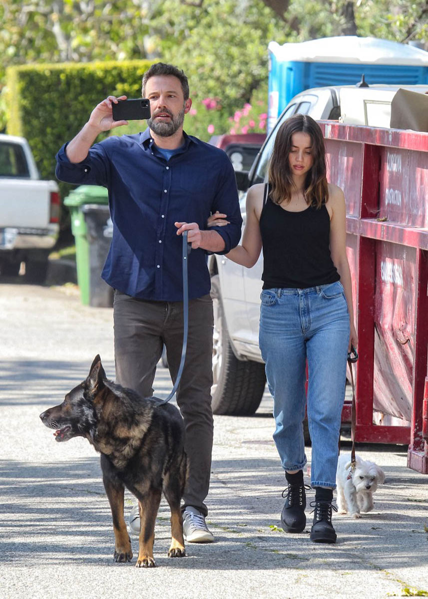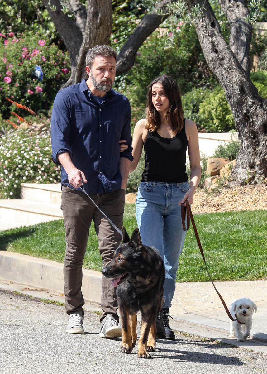 Ben Affleck and Ana de Armas stepped out again yesterday for their dog walk and, once again, in the presence of the paparazzi, couldn’t keep from touching each other. If you’re here often, and if you spend any time consuming gossip online, you’ve likely been side-eyeing this since they went into isolation together. Also, you probably came across the conversation that was happening yesterday about Ben and Ana – and if not, here is it: