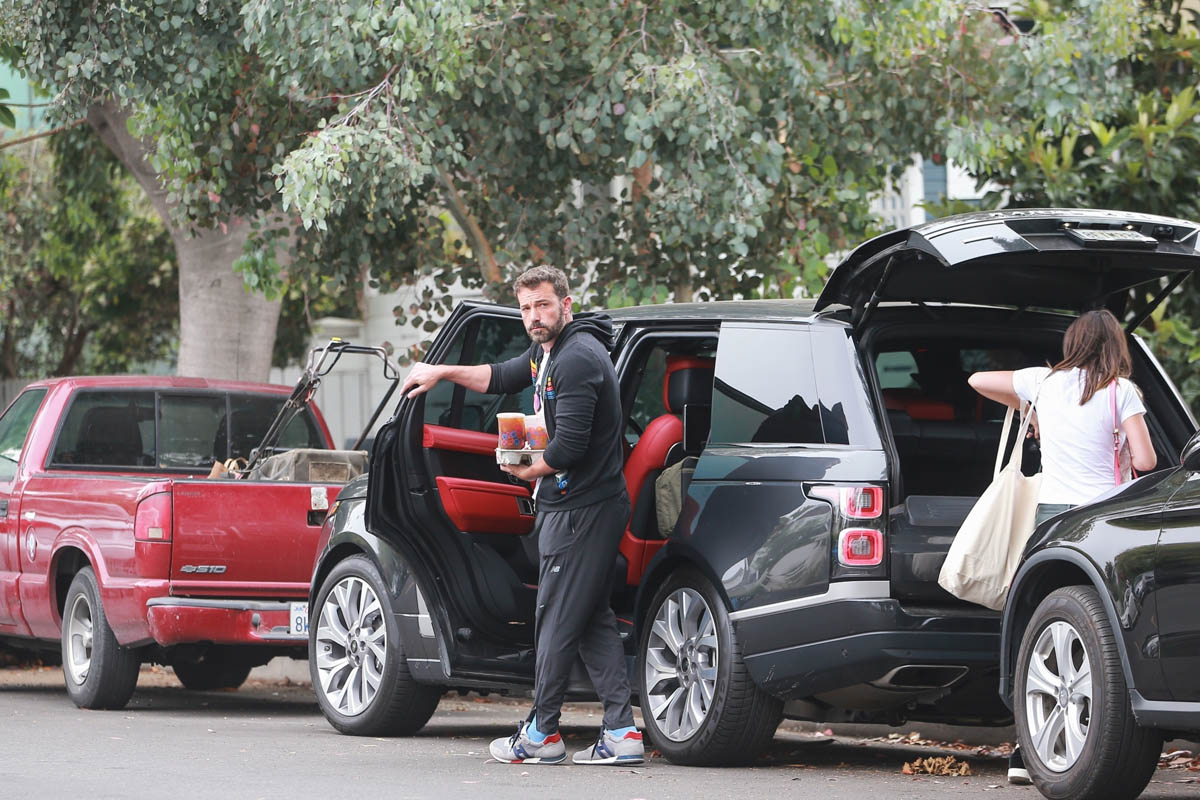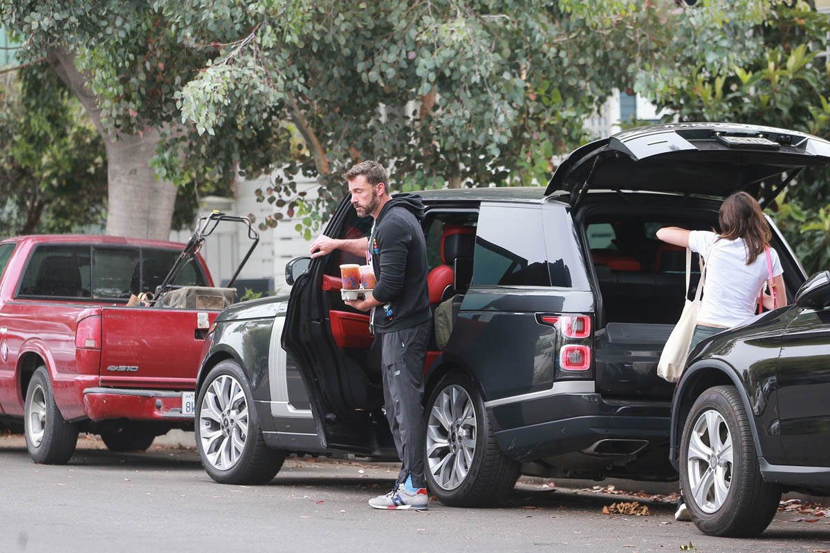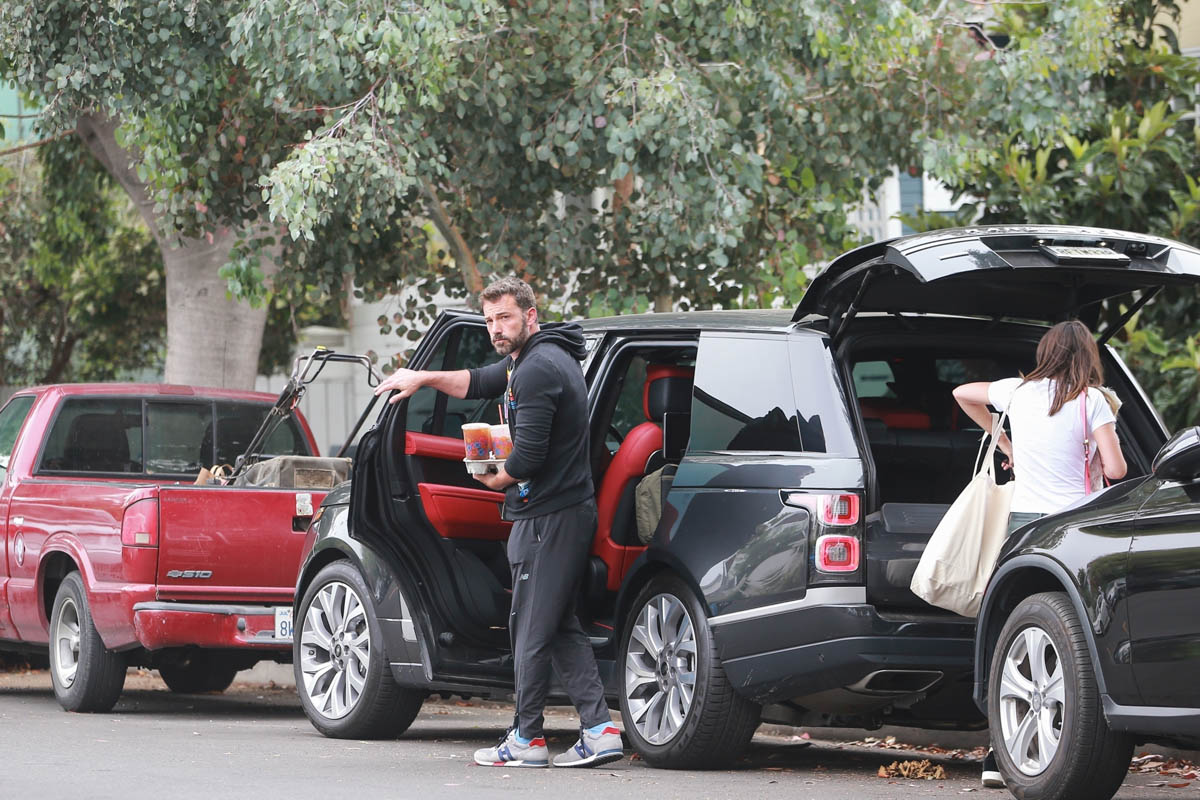 Ben Affleck and Ana de Armas were photographed, as usual, yesterday. What wasn’t usual was that they were packing up the car, with both dogs, and a few backpacks and what looked like overnight bags. Also plenty of refreshments. Seems like it could be a road trip? Or a beach trip?
