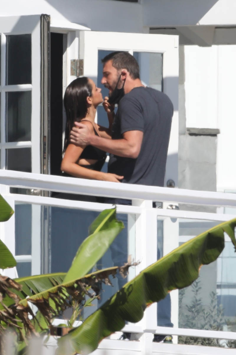 Ana de Armas was at a photo shoot in Malibu yesterday and Ben Affleck was seen visiting her on set. At one point they were on a balcony together and kissed. They left together later on, I guess to save money for the production so they didn’t have to send her home in car service, LOL. This isn’t the first time Ben’s been around while Ana’s at work. A few weeks ago she was also shooting something (a commercial perhaps) in Portugal and he travelled with her there too.