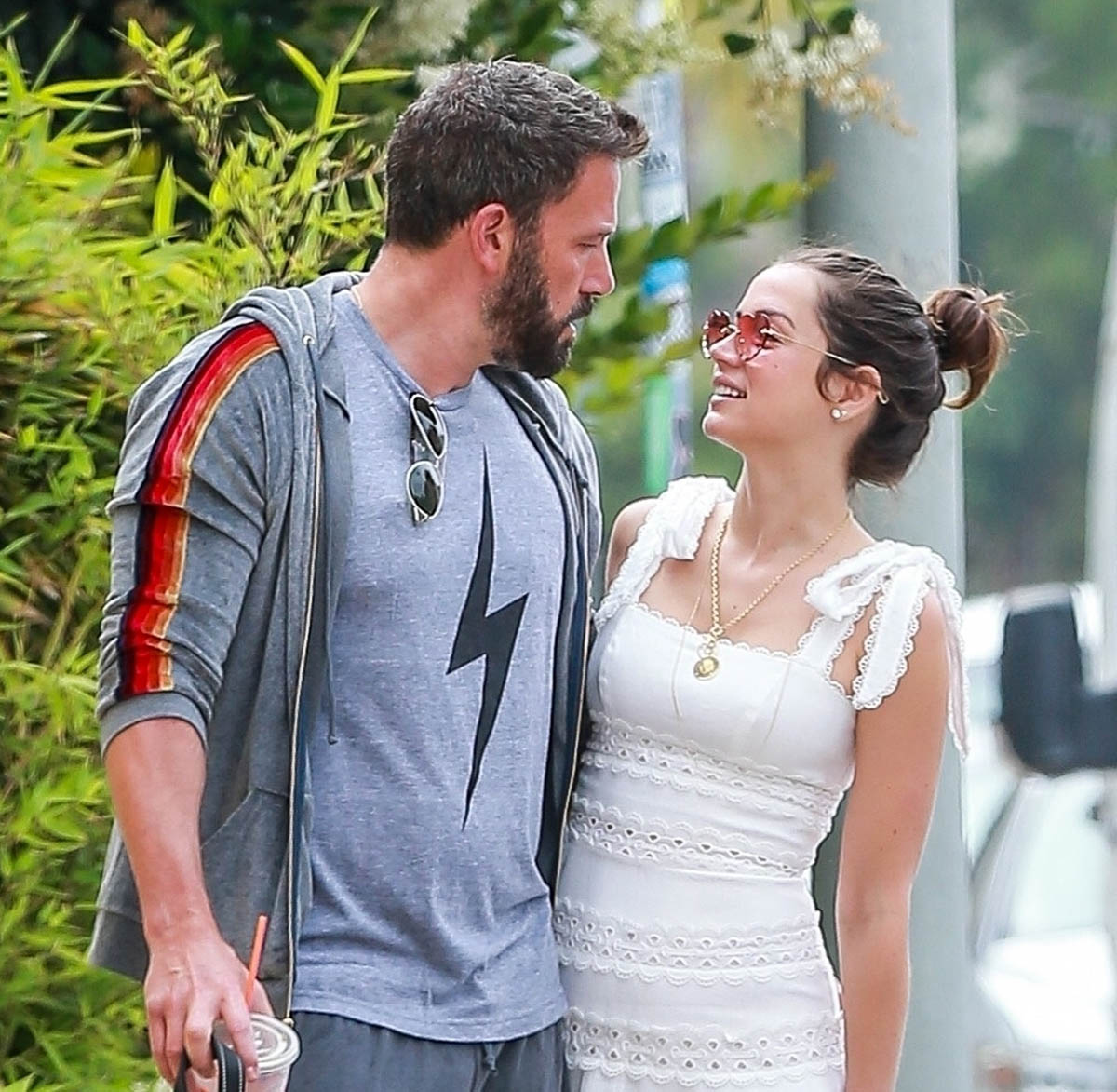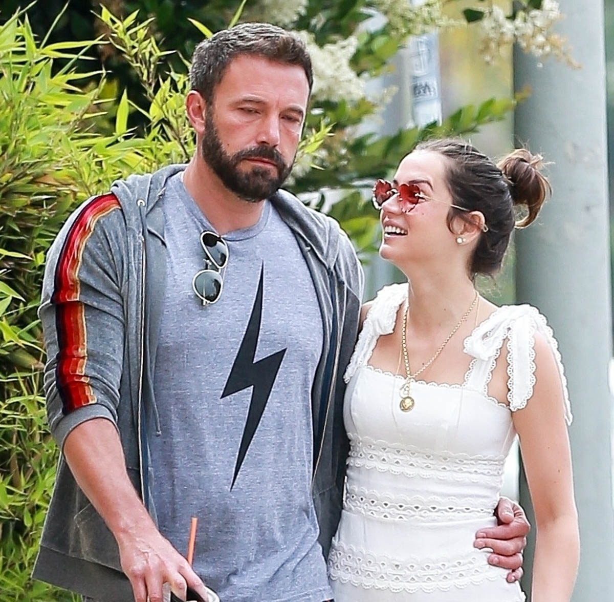 As for Ben and Ana getting back to the usual – there’s another “usual” that’s being continued here, which is that she rarely repeats outfits, and here’s a new one for us to enjoy: a white summer dress, flirty and fitted to the body, which I wonder if it’s a deliberate choice to let us know that while she may be a permanent part of Ben’s life, the permanence doesn’t have to do with a pregnancy. Right?