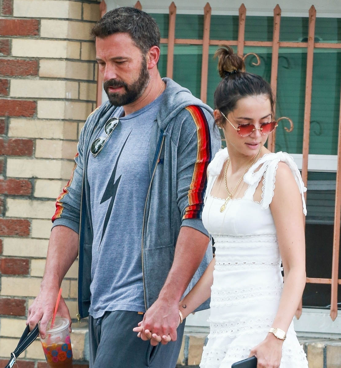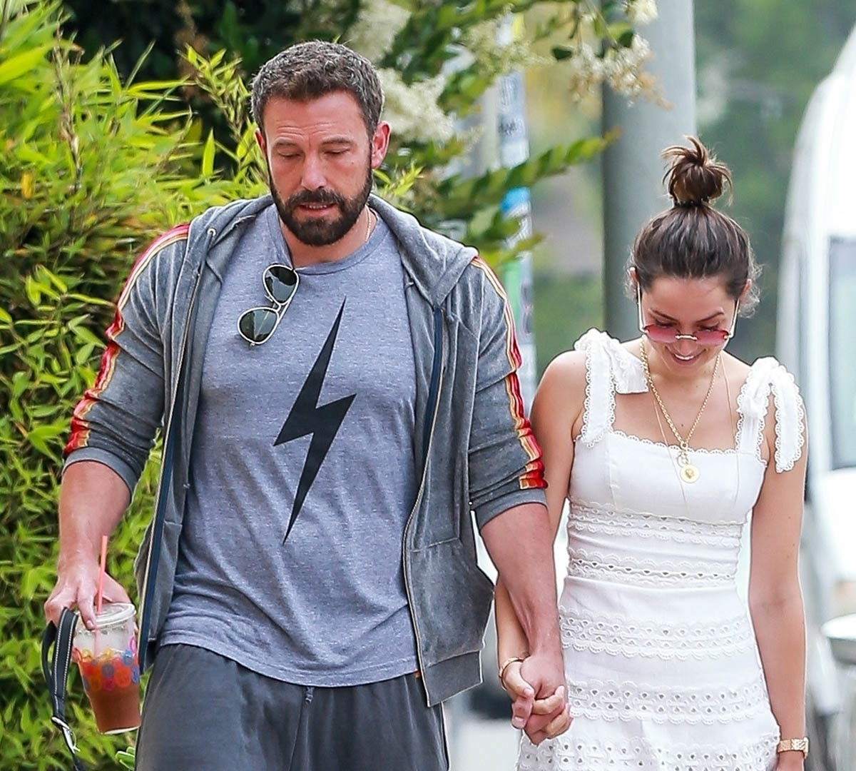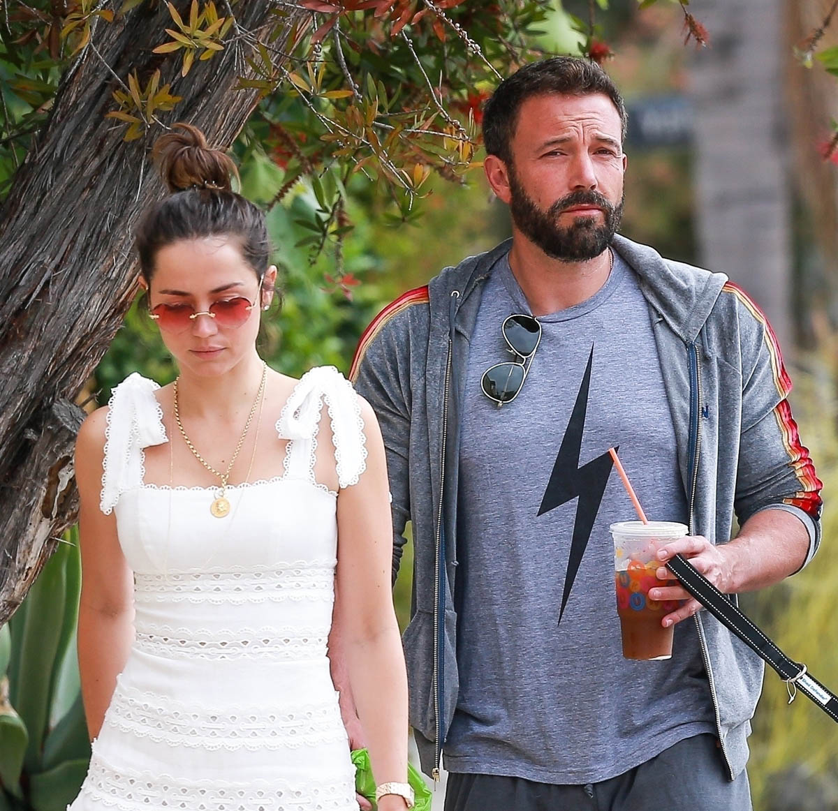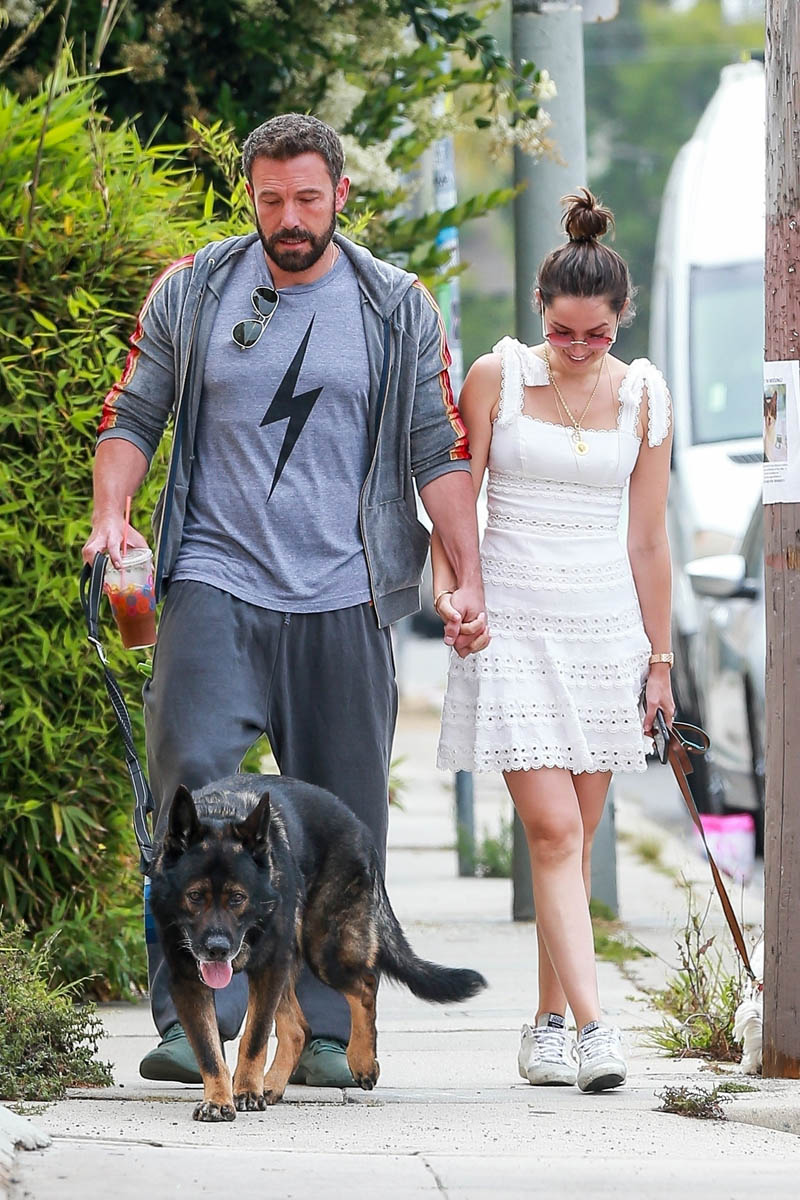 And they do seem like they’re so in love, non? Look at them in these shots, happy and affectionate. I always admire people who can hold hands on a dog walk with two dogs because Jacek and I have two dogs and we never hold hands walking the dogs. We don’t really hold hands anyway but it’s especially difficult with a leash in one hand to grab onto the hand to the other person. Or maybe it’s just because Ben and Ana’s dogs are much better behaved than our hooligan beagles who are either lunging at food left on the sidewalk or sniffing at a bush so long you keep walking and get yanked back to the same spot you were in for soooooo long because they have to sniff every single f-cking blade of grass. Why are celebrity dogs so well behaved? Is it just me and my selective observations about them?