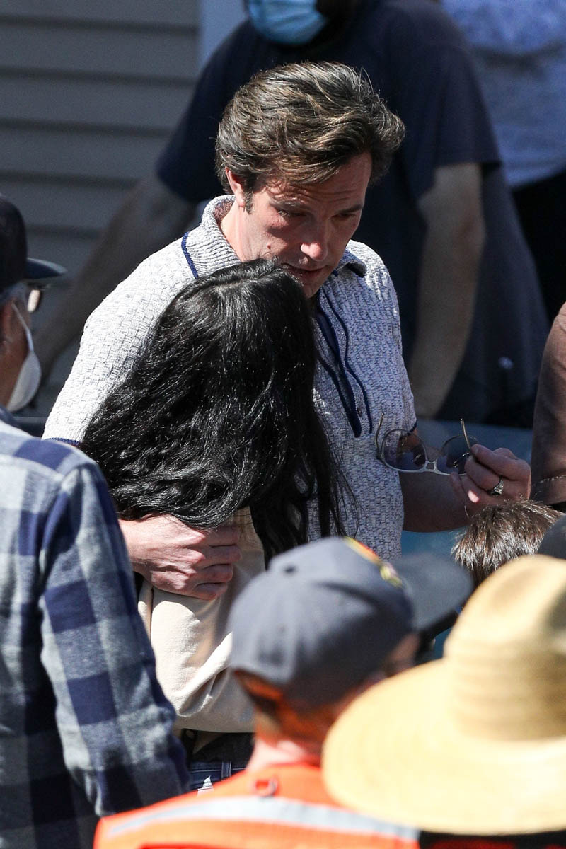 As you can see, in some of these shots, Ben has his arm around a woman with dark hair. The paps say at one point he “kissed her head sweetly”. It’s hard to make out what she looks like but before we go into any speculation, Matt Damon’s oldest daughter, Alexia, is a crew member on this film. That would definitely explain the affection, if indeed Ben is embracing his best friend’s daughter – it looks to me like a nice uncle’s gesture.