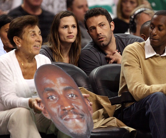 Ben Affleck has been shooting a movie in Boston. Taupe and their two girls have joined him. They say there’s a charity poker event he’s hosting with Matt Damon here in Cannes but last night Ben and Jen were at the Magic Celtics Game 7.
