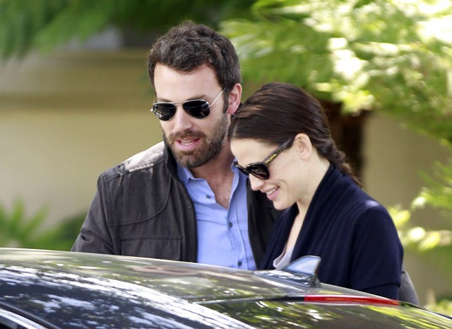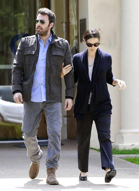 Jennifer Garner and Ben Affleck went to check out a school the other day. Sightings of them together don’t happen too often. And less often is public affection. The two seemed in great spirits. Ben even had a big loving smile for his wife. All’s good then in the land of bland?