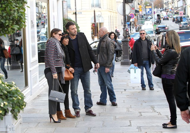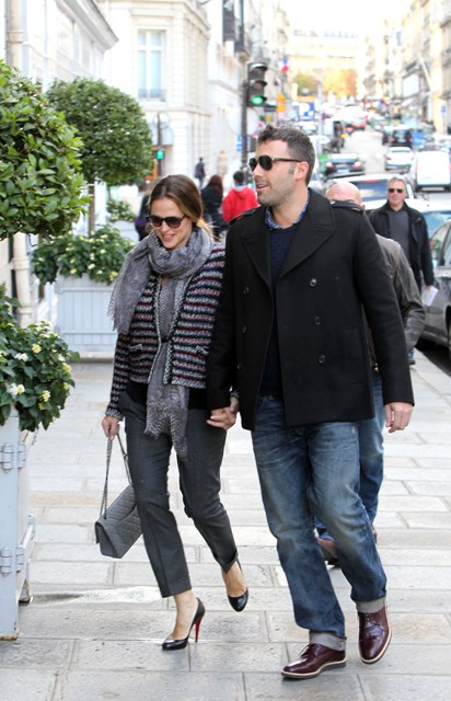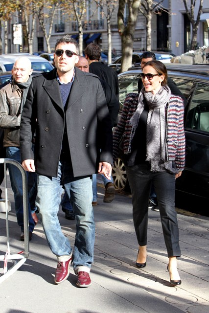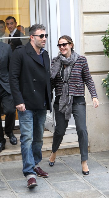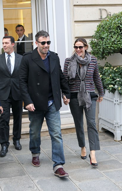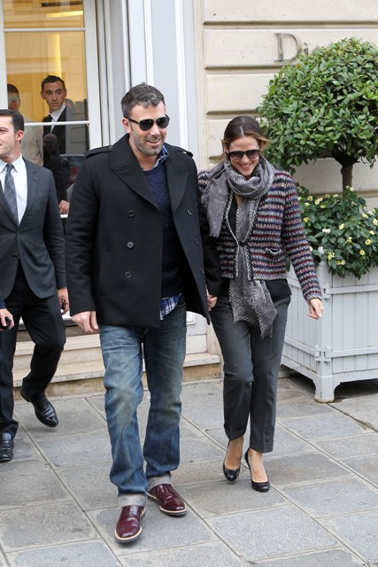 Check out Ben Affleck and Jennifer Garner in Paris for the premiere, happily posing with fans, not minding at all the paps shooting them as they hold hands on the Avenue Montaigne. How much does he love his wife?! He’s taking her to Chanel! He’s whisked her away for a quick trip away from the kids for some romance (and campaigning)! He’s a doting husband appreciating his supportive wife. And she’s the supportive wife always nurturing his artistic brilliance.
