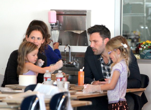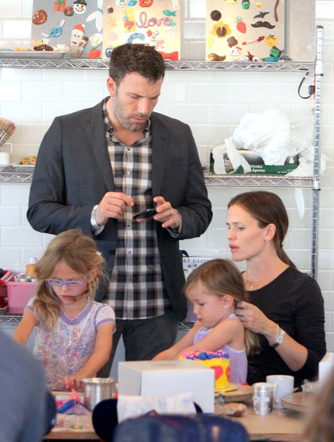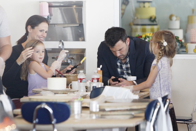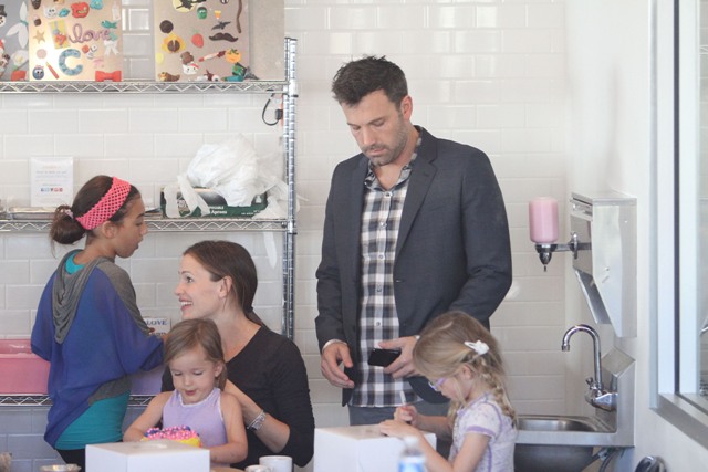 Ben Affleck and Jennifer Garner took their kids to a cake making shoppe the other day, playing the Brange campaign maybe even better than the Brange.