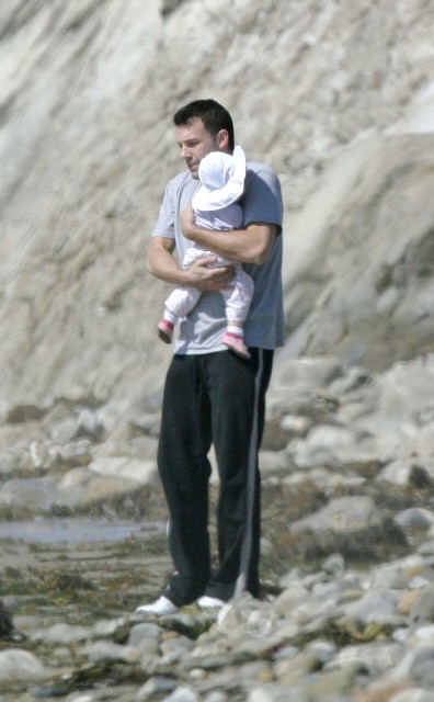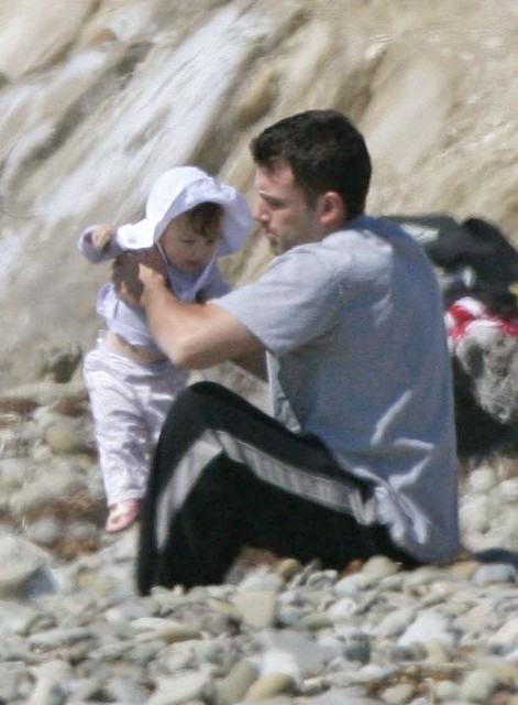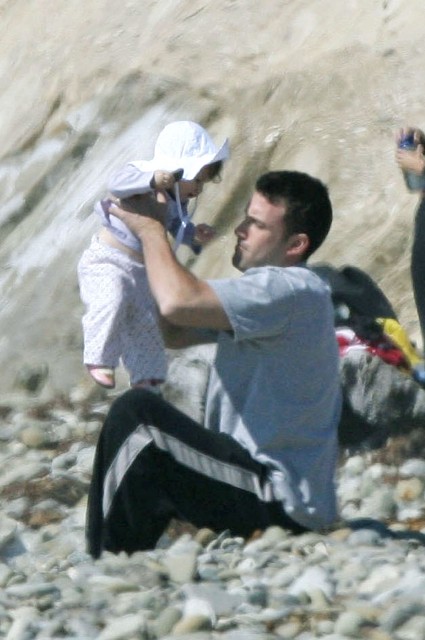 I"m not going to start fanning myself like they do on Oprah but this is pretty frickin" cute: Ben Affleck and Violet enjoying a father/daughter at the beach. Though he looks just a little bit awkward, I think it adds to the charm - the "awwwwww" factor few woman can resist. Imagine that. Only 3 years ago Ben was allegedly getting manual at Brandy"s in Vancouver which, of course, prompted an intense media firestorm which, of course, led to the cancelled JLo wedding wedding which, of course, subsequently signalled the end of Bennifer. I"ll get into the Brandy dirt another time...when Violet"s not involved - I don"t feel like fighting with the Sanctimonious Right today. Besides, this is about Daddy Ben and his Baby Girl - almost a year old, SOOO cute, he really is barely recognisable anymore is he? Still...from one degenerate gambler to another - you bet your boob job there"s a little itch. I promise. Source