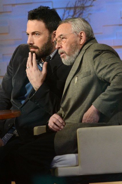 Here’s Ben Affleck in New York this morning on Good Morning America with Tony Mendez (he plays him in Argo), pushing the film as we get closer to Oscar nomination day and the Academy voting period. Zero Dark Thirty momentum seems to have slowed as a result of some of the torture criticism, giving Argo a slight push in recent days as the less controversial option. Right now, Lincoln seems to have taken the lead, but, as my friend Teri -- a member of the Broadcast Film Critics -- said the other day, Argo may be, among the serious contenders, the one movie that satisfies across the board: the intellectuals and the masses, the industry, the media, and the money.