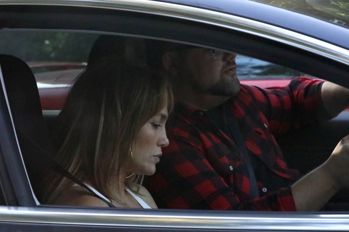First though, because this is JLo, always hustling - the work. JLo was filming yesterday and Ben visited the set. TMZ has the photos. As you can see, he was so into watching her work that he had on headphones and was apparently quite friendly with the crew.