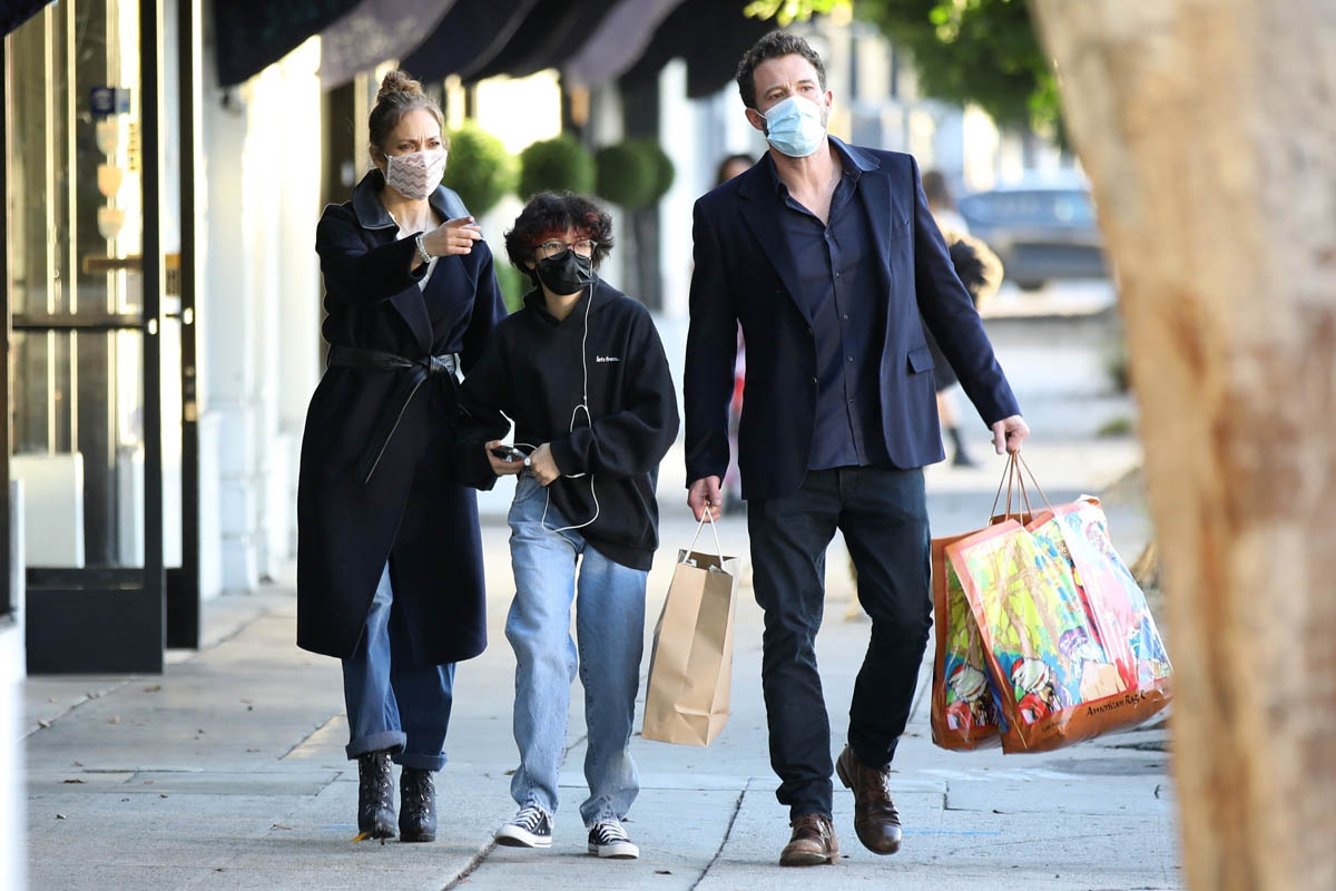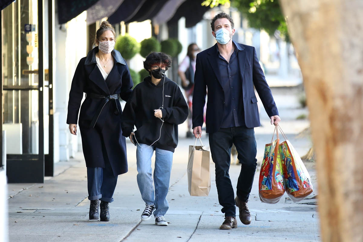 Here they are on New Year’s Eve, shopping with JLo’s daughter Emme in matching black. Emme and her brother, Max, turn 14 years old in February. Fourteen! Right? Nearly two years ago, a few weeks before her eleventh birthday, she was on stage with her mother during the Super Bowl halftime show.