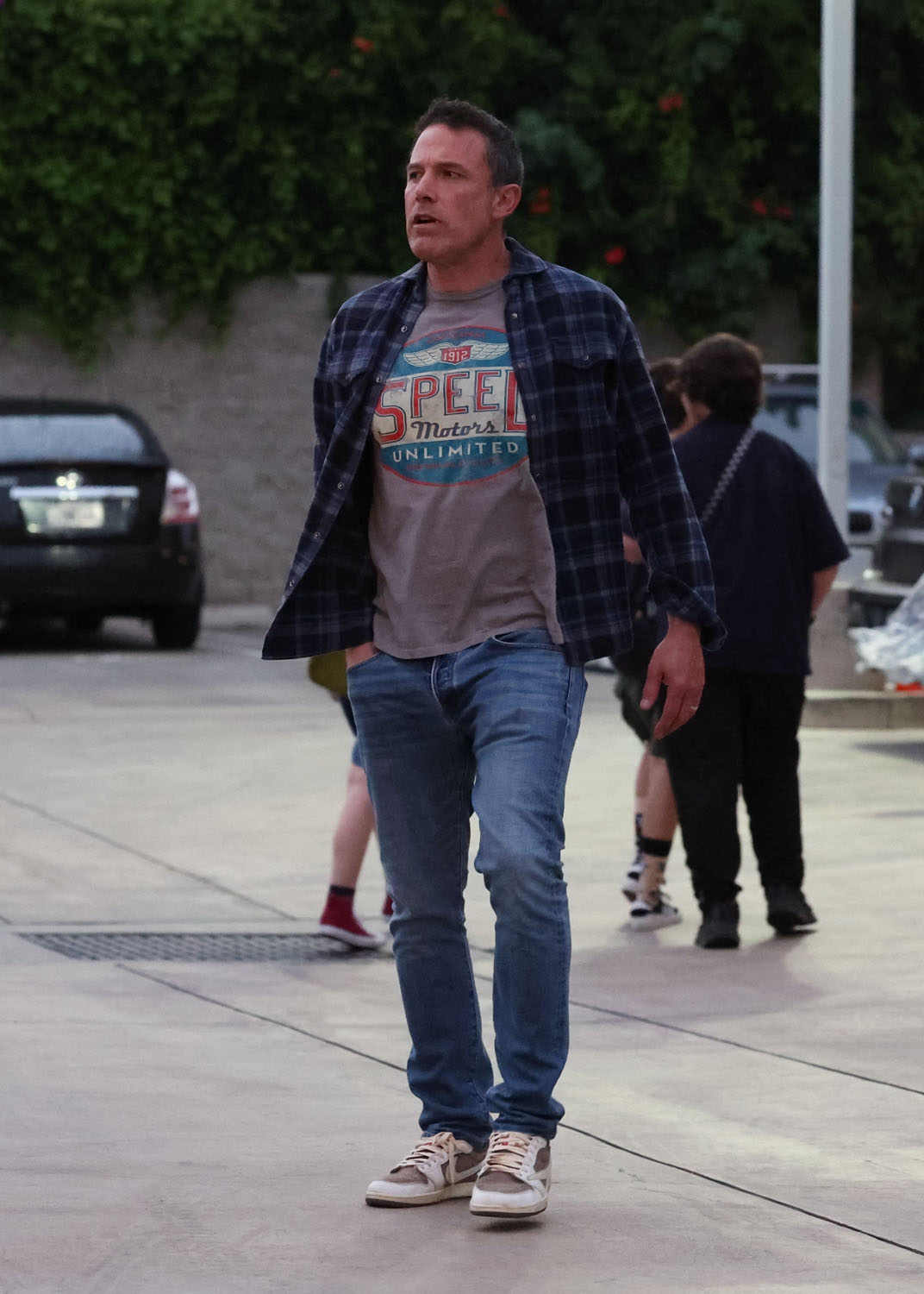 There are some cute shots of Ben and Violet here as they’re leaving. Violet’s got her arms wrapped around her dad as they’re talking and my big takeaway here is… she is SO tall! Ben is a legit tall celebrity. Most of them lie about their height, but Ben who is listed at 6 ft 2 is actually 6 ft 2. I know this because I’ve stood in front of him on a red carpet and I’m 5 ft 3 and I was definitely looking way up. Violet, you will note, is wearing sneakers. And she’s not that much shorter. She has to be at least 5 ft 10, right?