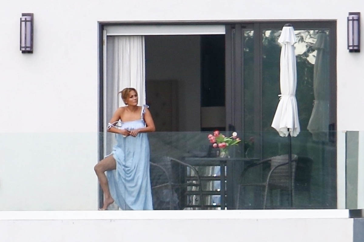 Let’s also talk about their, um, appearances in these shots. JLo’s swanning around in a nightgown, her hair messed up, with that glow. This woman is always glowing, we know, but JLo has a variation of glows. This is …well… this is a specific kind of glow. You know the glow. A rumpled glow. Rumpled? Not a word we usually associate with Jennifer Lopez. But that’s where we are now, what we’ve returned to.