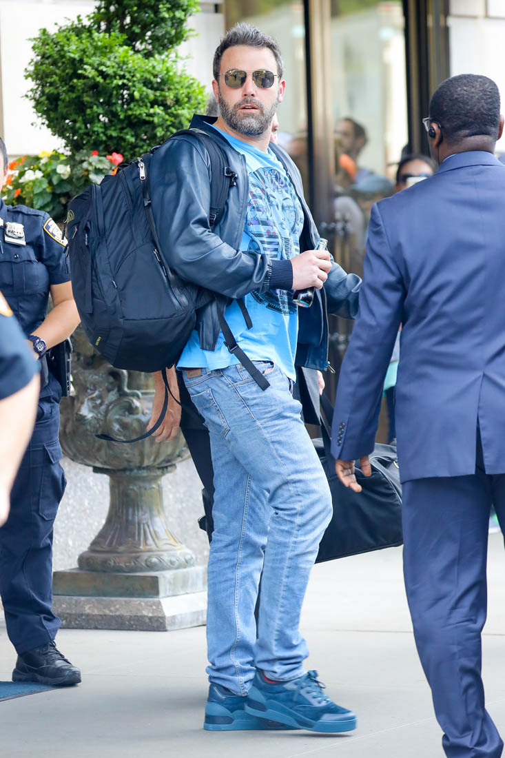 Here’s Ben Affleck on Tuesday leaving his hotel in New York with Lindsay Shookus and then at the airport, presumably heading back to LA after spending the weekend with her. As Sarah just wrote in the previous post, it’s looking more and more like Ben will no longer be Batman. That whole situation is f-cked. Like when she sent me the story last night, I started questioning whether or not I actually knew how to speak English because I couldn’t make any sense of the situation at all. Two Joker movies and two Batmans but not connected but sort of connected? Is Adam Sandler involved in this? That’s the only explanation. Actually, no. There’s another explanation for why all of this is so sloppy. Because Ben Affleck, lately, has been nothing but sloppy. Sloppy seems to be following him around. Is sloppy becoming his signature?