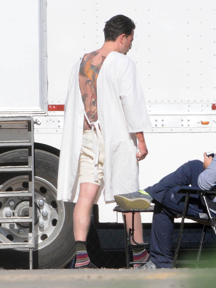 This is Ben Affleck on the set of Live By Night the other day showing off his back. Tattoos are a thing for a lot of people. There’s an entire New Adult romance section of books featuring men with tattoos and the other women and men who f-ck and love them. Obviously, in those stories, the men who are inked know how to f-ck so good.