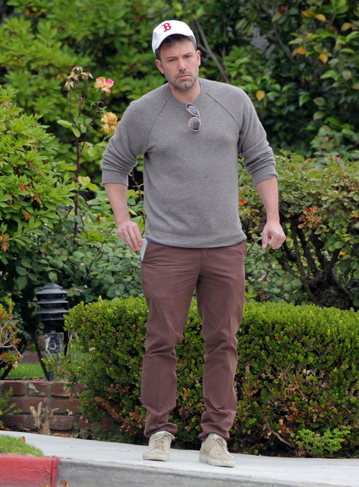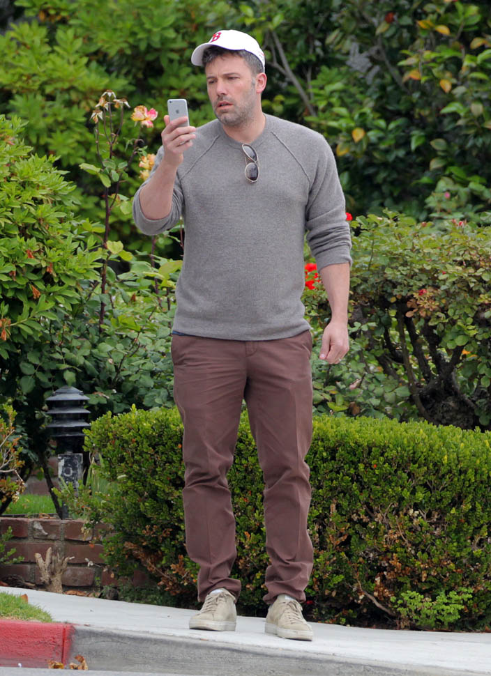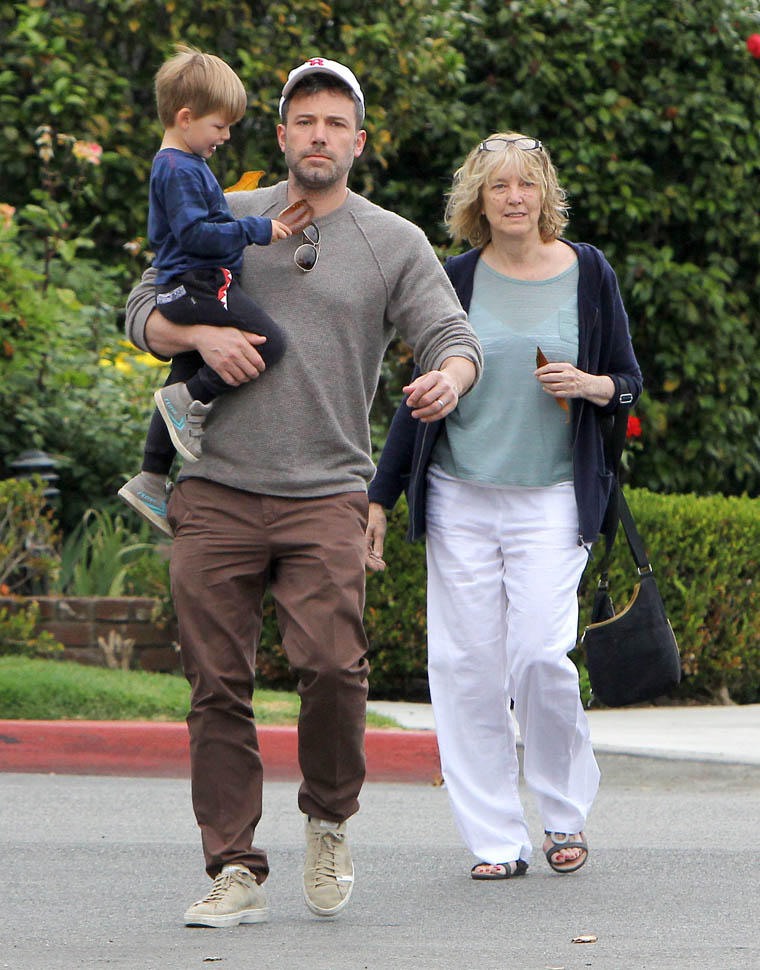 Jennifer has been spending the work week in Montreal shooting a new movie lately, leaving Ben to be with the kids in LA. A couple of weeks ago, he was seen in Vegas playing at the tables at 3am, then rushing back home for the school run. Yesterday he was papped with his ma who’s evidently helping him out while Jennifer’s away. He can’t really f-ck up too badly when his ma’s around, right? Well… mothers are often the most forgiving. And patient. And they often come up with all the excuses.