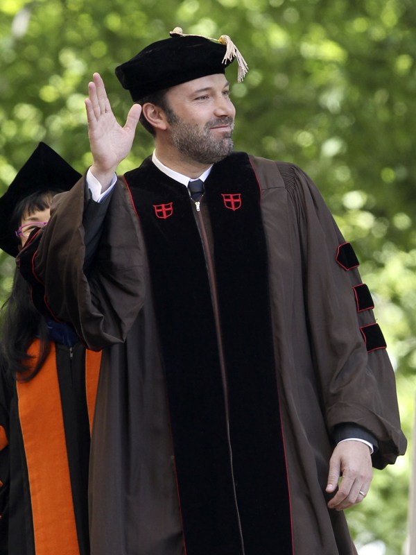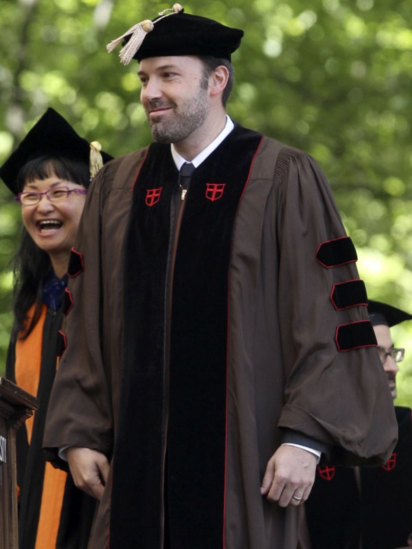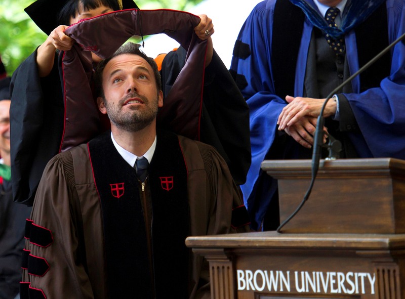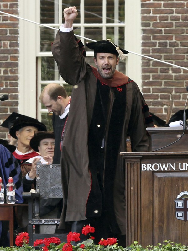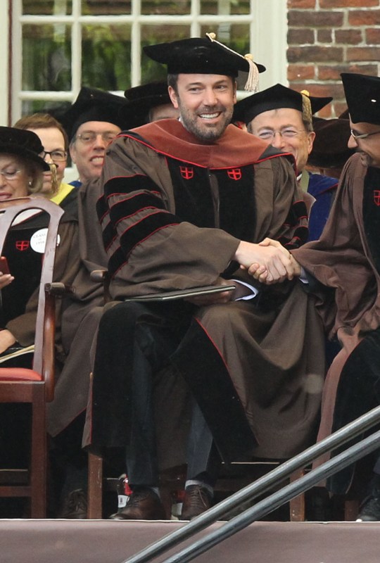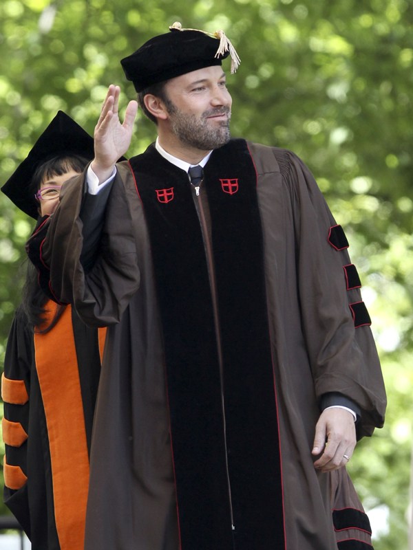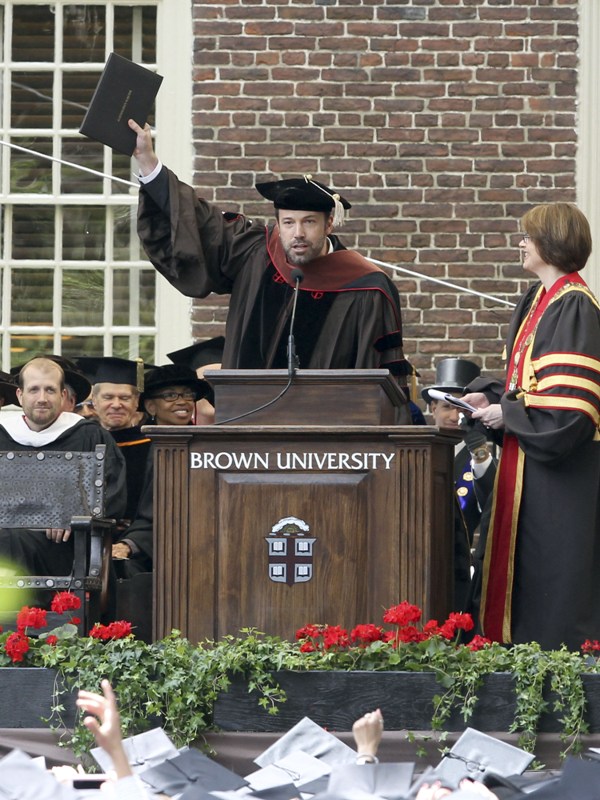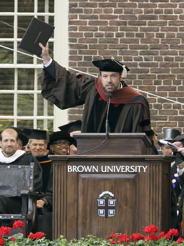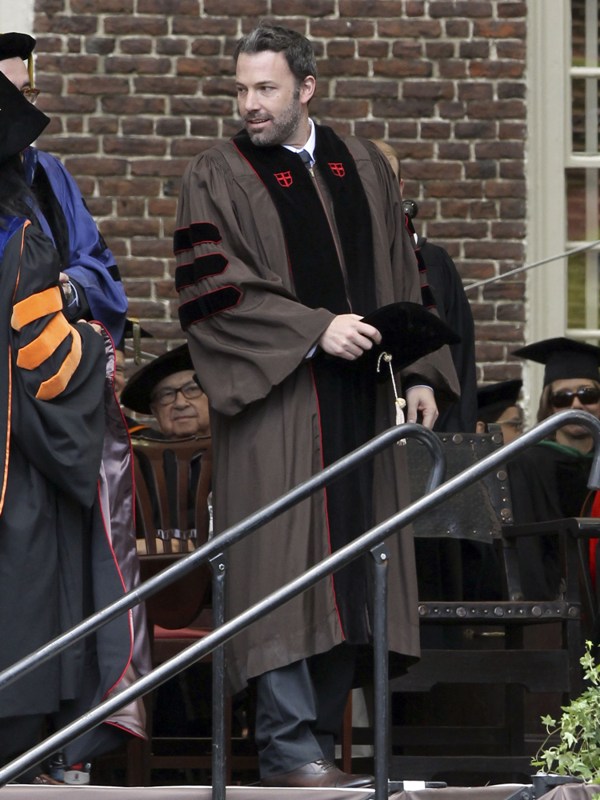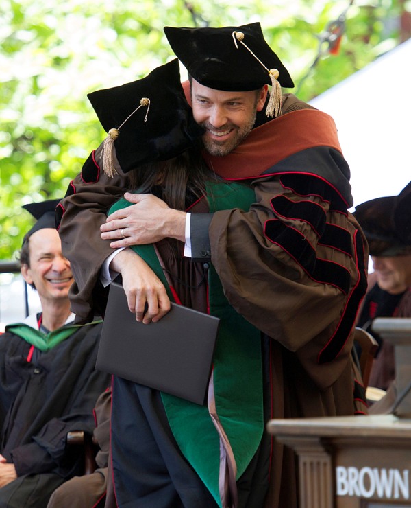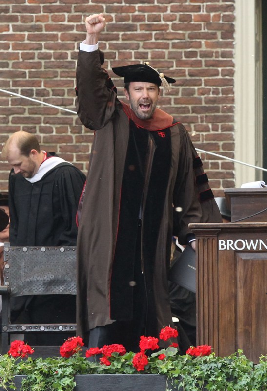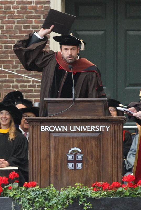 Ben Affleck was in Rhode Island for the weekend where he received an honourary doctorate in Fine Arts from Brown University. He’s Dr Affleck now. Would you change all your business cards and signature block on your email? I totally would. I might not insist that people call me Dr Lui, but it would be nice.