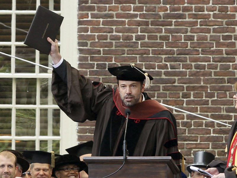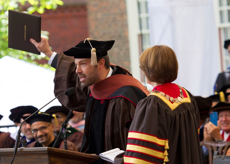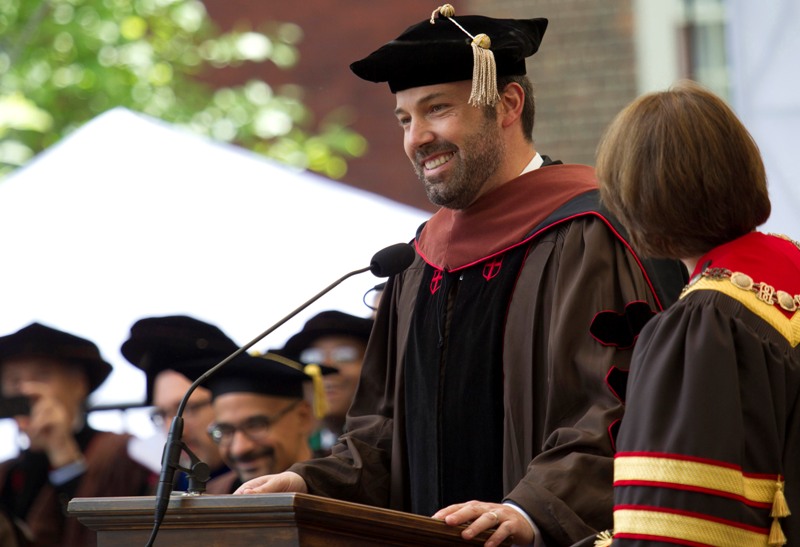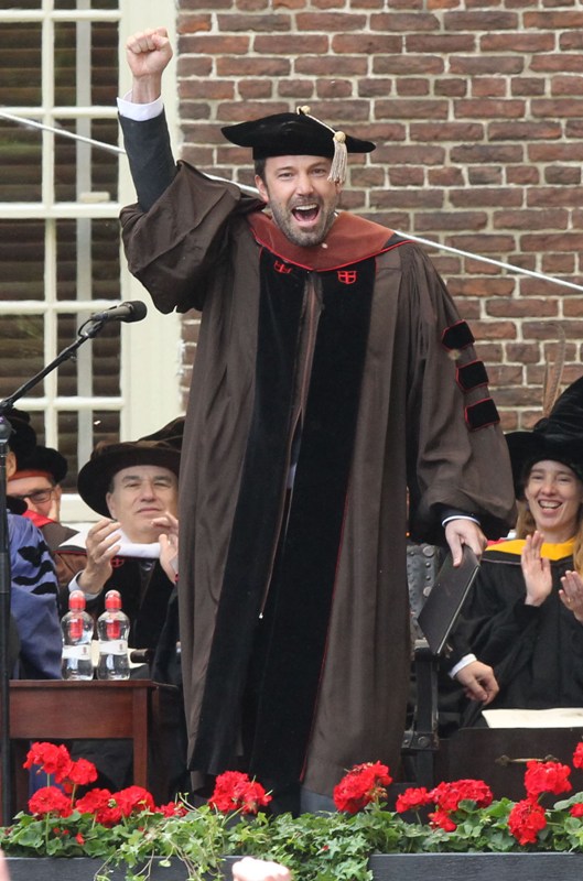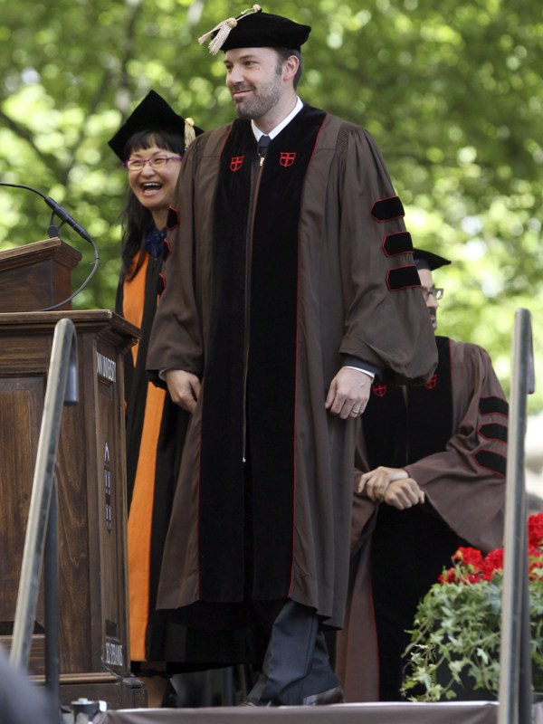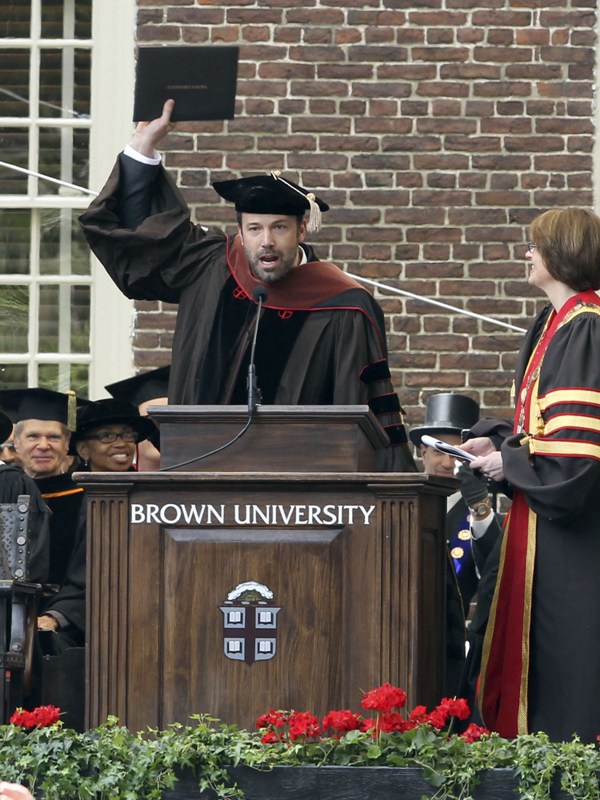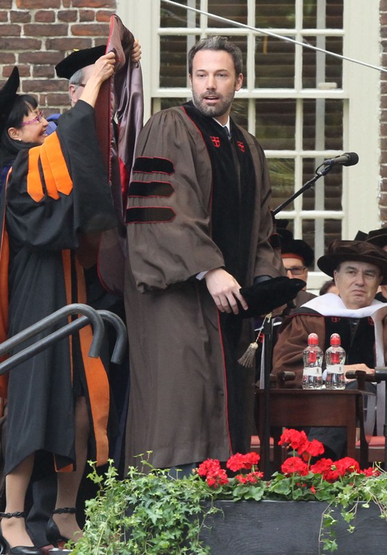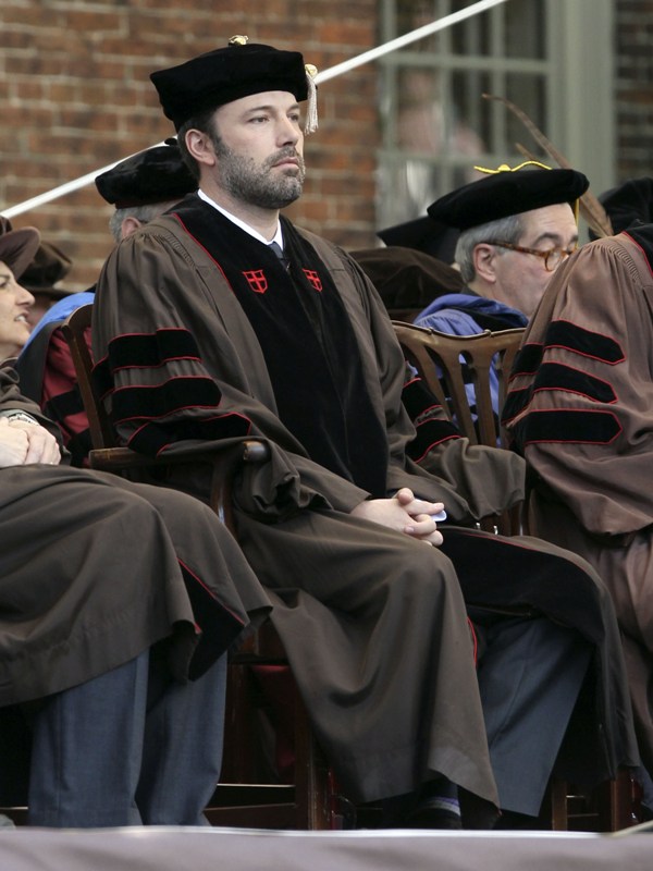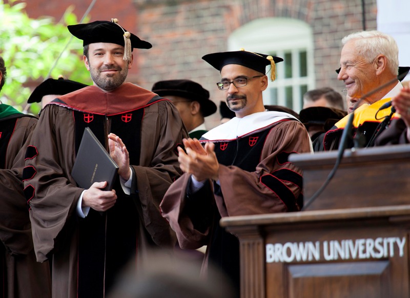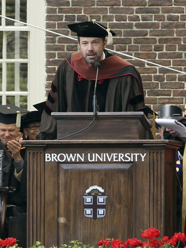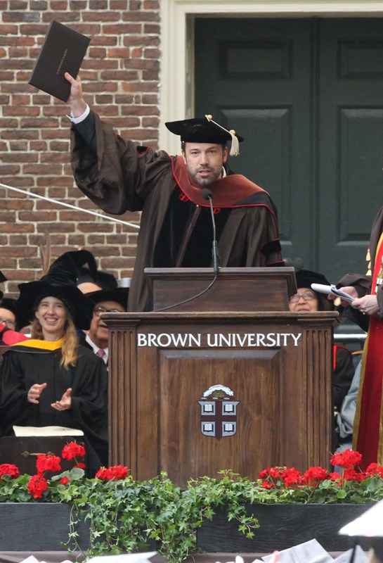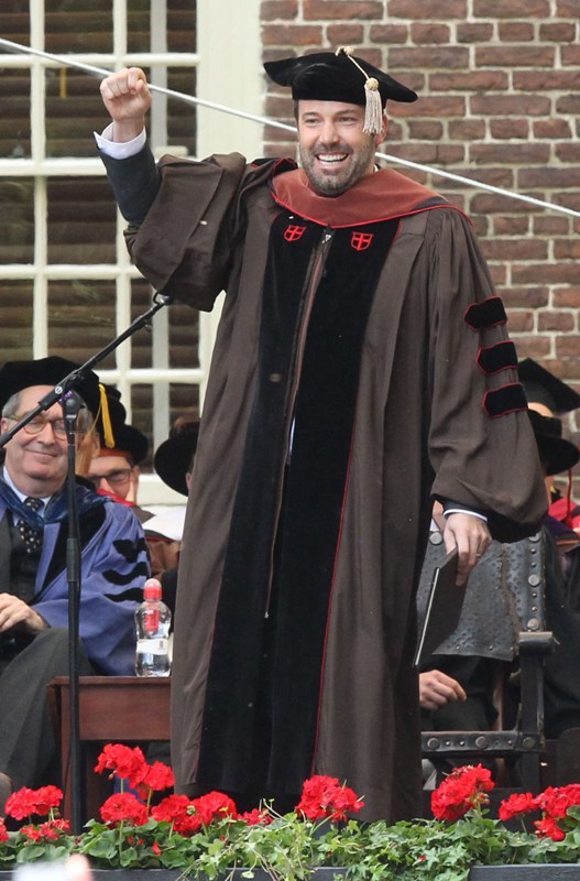 Ben Affleck was in Rhode Island for the weekend where he received an honourary doctorate in Fine Arts from Brown University. He’s Dr Affleck now. Would you change all your business cards and signature block on your email? I totally would. I might not insist that people call me Dr Lui, but it would be nice.