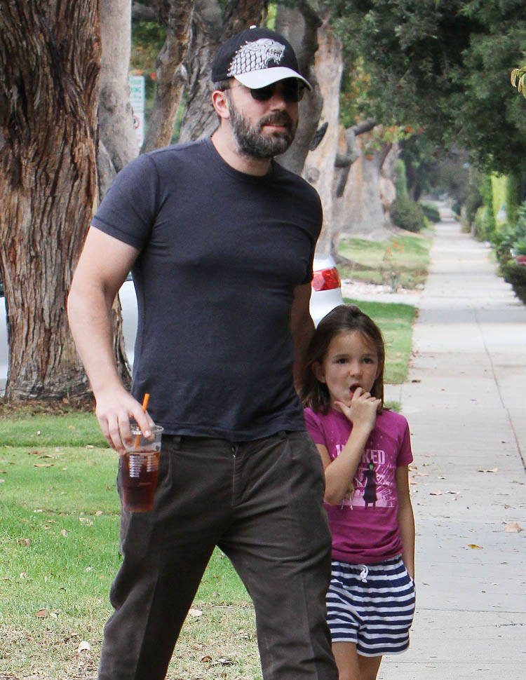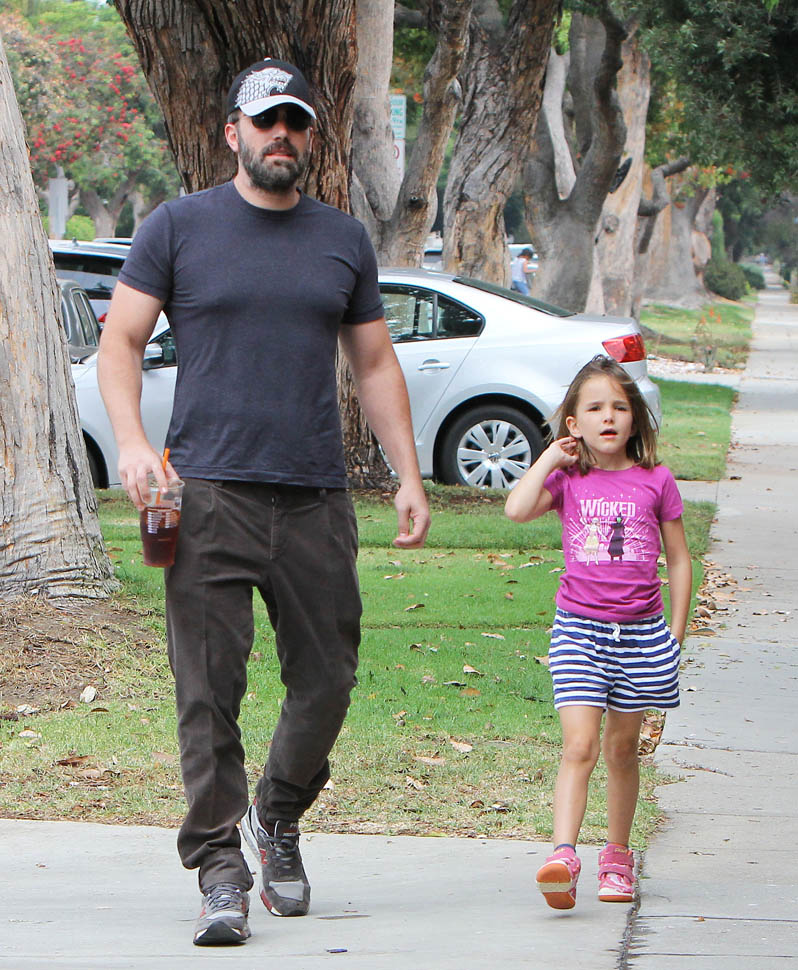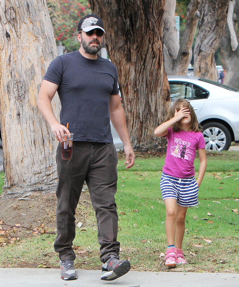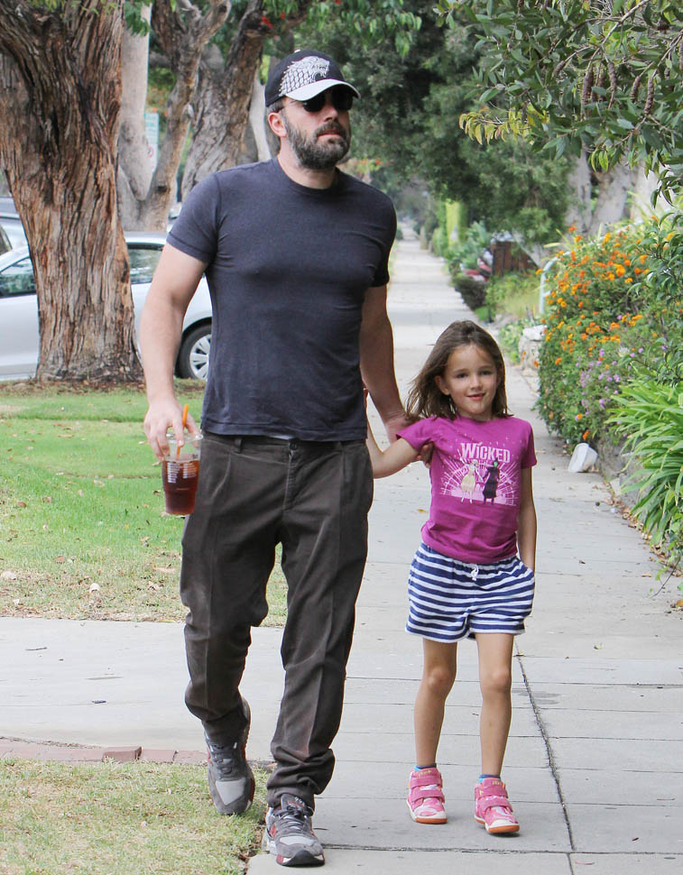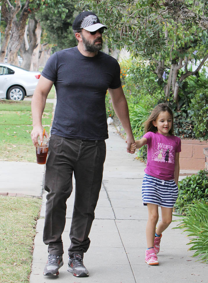 Ben Affleck was with the kids this weekend – I posted a few shots the other day of him wearing his Sirius Black t-shirt, click here for a refresher. Yesterday he was out with daughter Seraphina. And PEOPLE had a story late Tuesday afternoon about how he took his children to a farm on Monday.