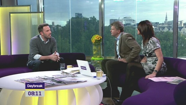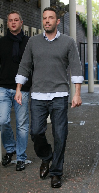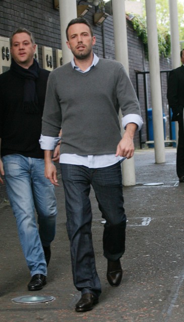 Here’s Ben with some swagger this morning in London celebrating his big box office win this weekend while promoting The Town overseas.