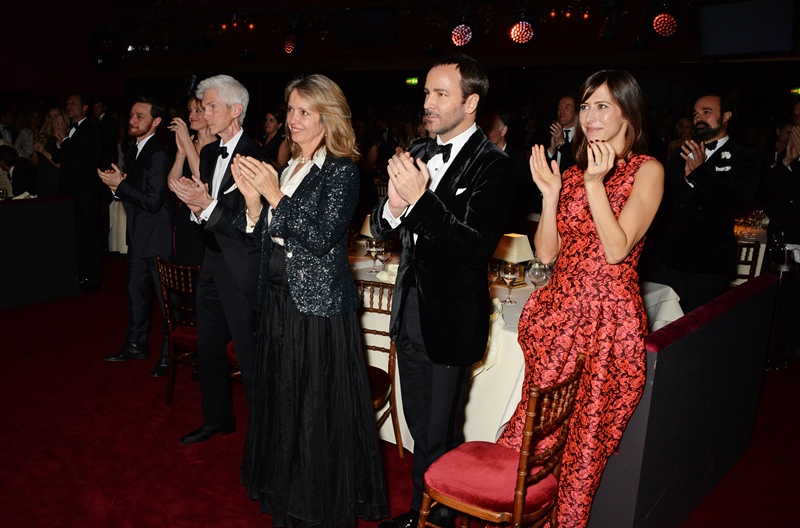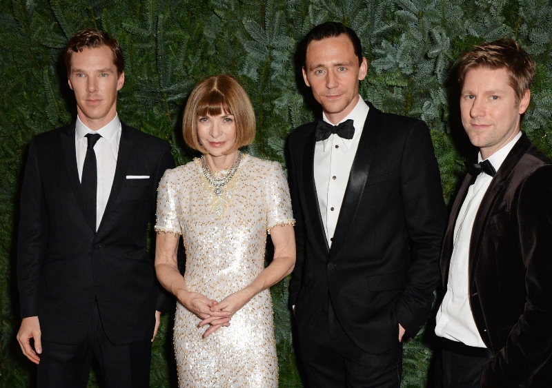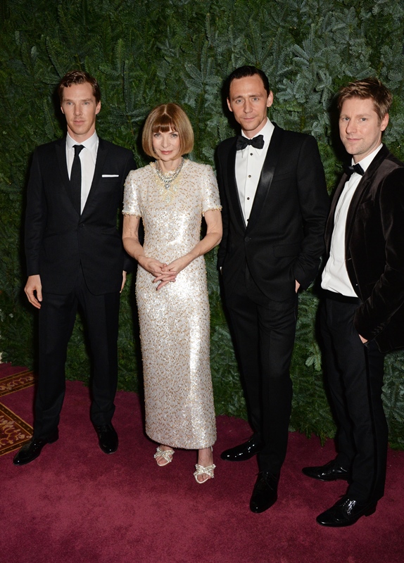 Cumberbatch definitely had a celebrity connection advantage on the night though. Or at least he took more advantage of his. Check him out with good friend Tom Hiddleston. And they hung out – awkwardly spaced – with Anna Wintour (in a pair of ugly grandmother slippers) and Burberry’s Christopher Bailey, oh and while Cumberbatch was up on stage presenting to Tom Stoppard, Sophie was seated beside Tom Ford.