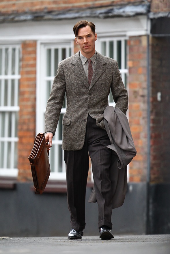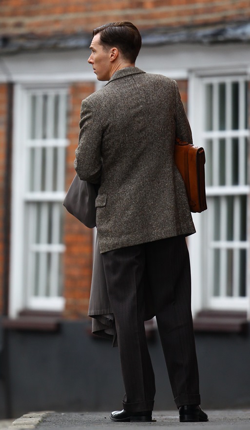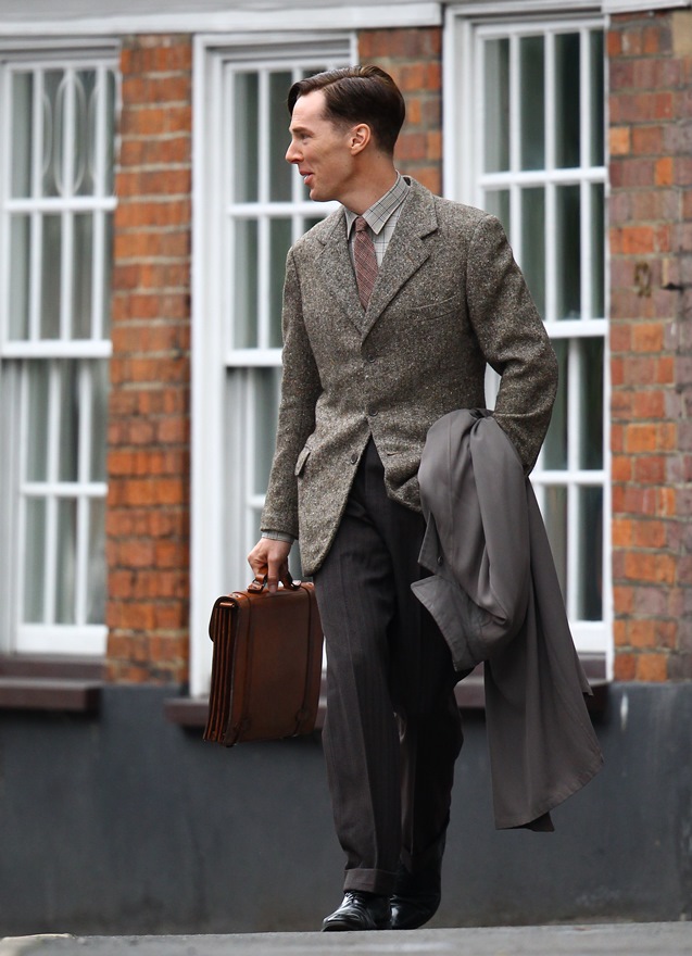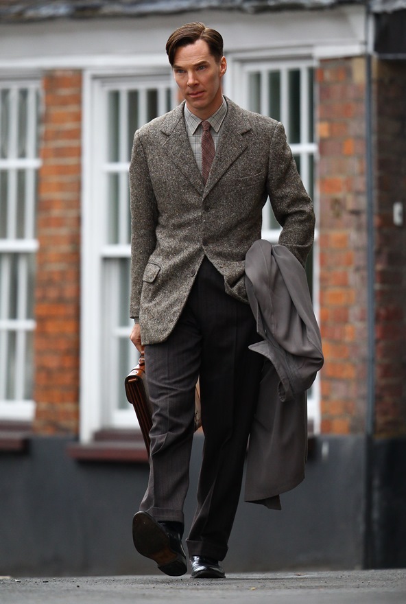 For a while, Cumberbatch protested all the class talk surrounding him because he was afraid of being typecast as a posh type, but looking at his resume, he’s been typecast as a Very Smart Person. Tom Hiddleston has become Shakespeare Guy, and his buddy The Batch is Math Man. This could be a coloring book: The Adventures of Math Man and Shakespeare Guy. Get on that, Etsy. And it’s a good look for him, right? He wears the 1940s well. I always think that’s a tricky decade to pull off. It’s got a lot of straight modern lines but there’s a lingering starchiness from the previous era. But Cumberbatch always looks good in period dress and this is working for me way better than, say, his Assange look.