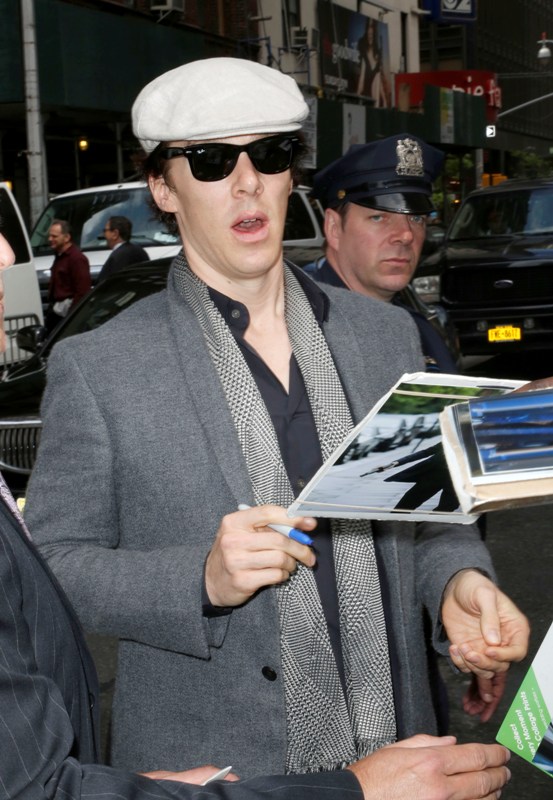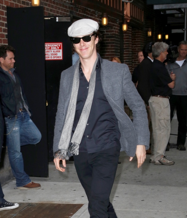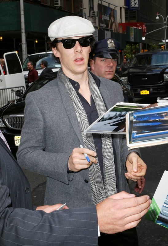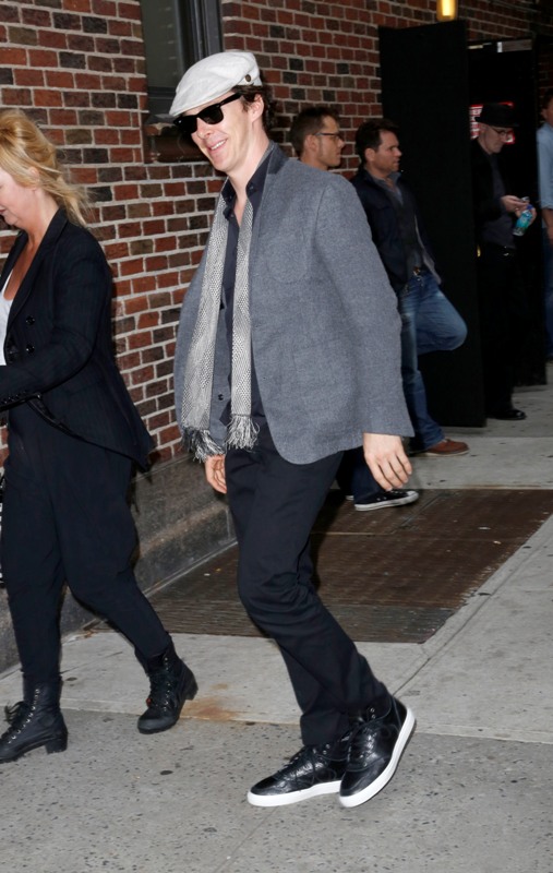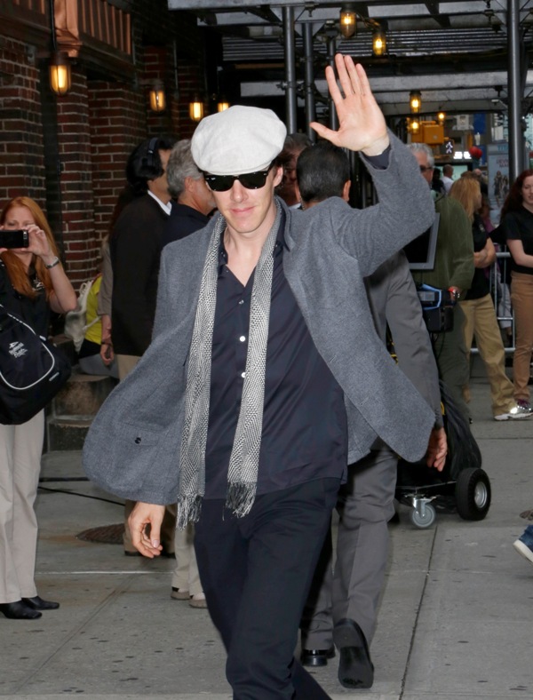 Cumberbatch also made a solo stop at David Letterman yesterday, and, as he was on Graham Norton, he’s charming and debonair and witty—where is this in his print interviews? It’s like two totally different people. He should be Live Interview Benedict all the time. And check out the difference in crowd reactions on opposite sides of the pond. At Graham Norton he’s clearly the biggest get and gets a huge reception, at David Letterman the audience claps politely, like they don’t quite know who he is. Six months from now, that won’t be the case. Last night was also the New York premiere of Star Trek Into Darkness, at which Cumberbatch looked very handsome (shut UP, Lainey, HE DID).