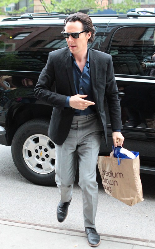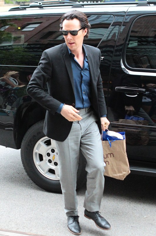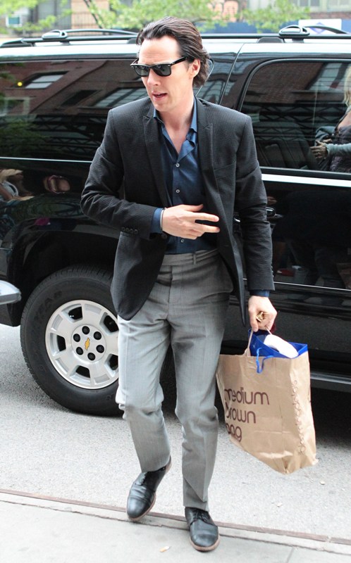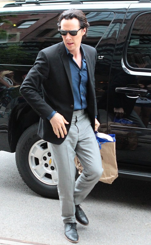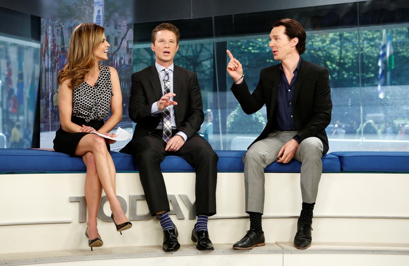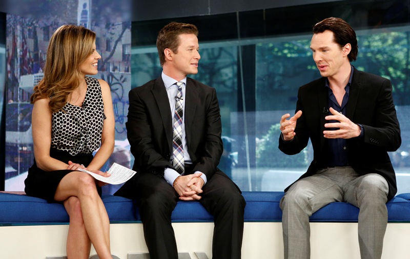 Speaking of mortifying. Billy Bush, the human equivalent of grass clippings, interviewed Cumberbatch on the Today Show on Friday morning. I don’t watch the Today Show, so I don’t know who the woman is, but I recognize Bush, who is my least favorite person on every red carpet ever. So it’s completely amazing to me the way Cumberbatch and the co-host talk over him. Every time Bush opens his mouth someone else starts talking and cuts him off. And when Bush addresses him, you can see Cumberbatch swallowing his…I’m going to go with impatience, because “hatred” seems a little steep for so innocuous an interaction. But you can see it on his face: I don’t have time for you. It’s not a face I’ve seen him make in any other interview, especially here in America where he’s going out of his way to be pleasant and ingratiating. Given how no one has a lick of interest in anything Bush says, I fully expected the segment to end with a can flying in from off camera and hitting him in the head. You know the crew totally dreams about doing it.