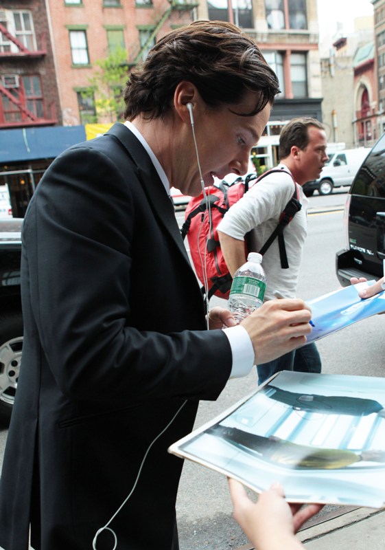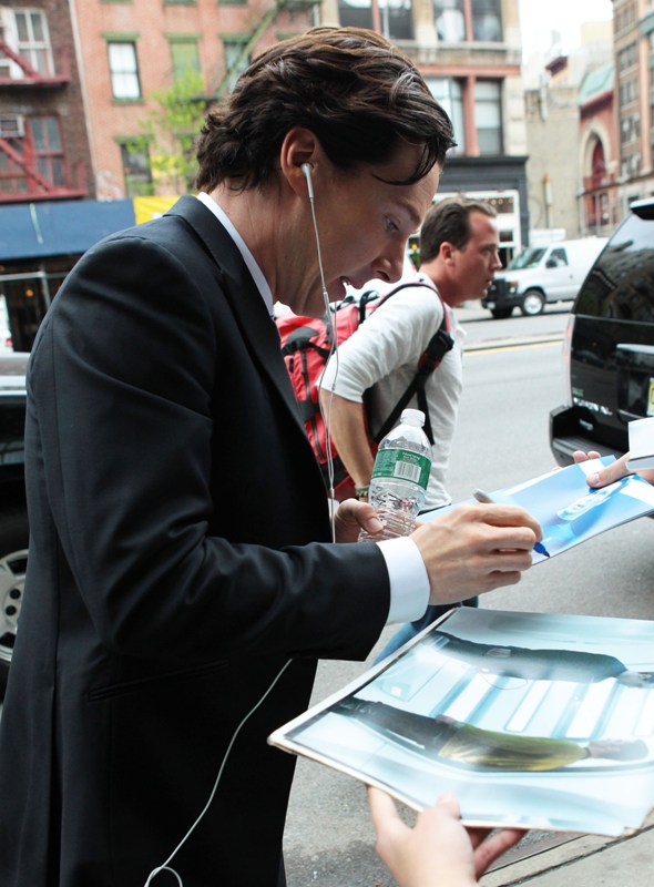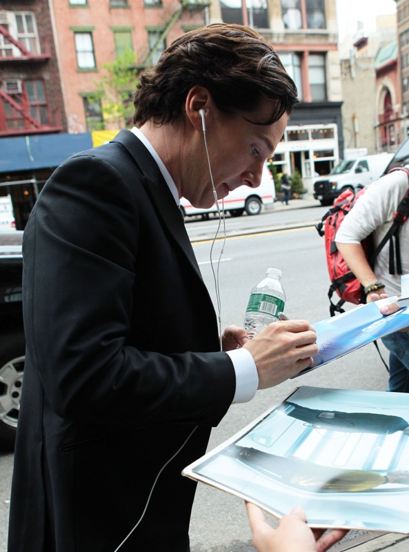 I’ve noticed it before, haven’t you? That Benedict Cumberbatch is patently embarrassed by the name his fan collective has—as he is quick to point out—bestowed upon themselves? He doesn’t even like to say it. Start watching/reading Cumberbatch’s interviews en masse, as I have done over the last week, and it comes up a lot. “Your fans call themselves Cumberbitches! Haha, that’s great!” says one talk show host after another. But Cumberbatch isn’t as enthusiastic. He stammers, he looks away, he doesn’t want to say it. It sets back feminism, he says. Maybe he’s not wrong. Some people object to the word “bitch”, others don’t—I don’t happen to have a problem with it—but Cumberbatch clearly isn’t comfortable with it. And I buy the discomfort; I don’t think he’s paying lip service to an ideal he doesn’t actually hold. I don’t think he likes this term.