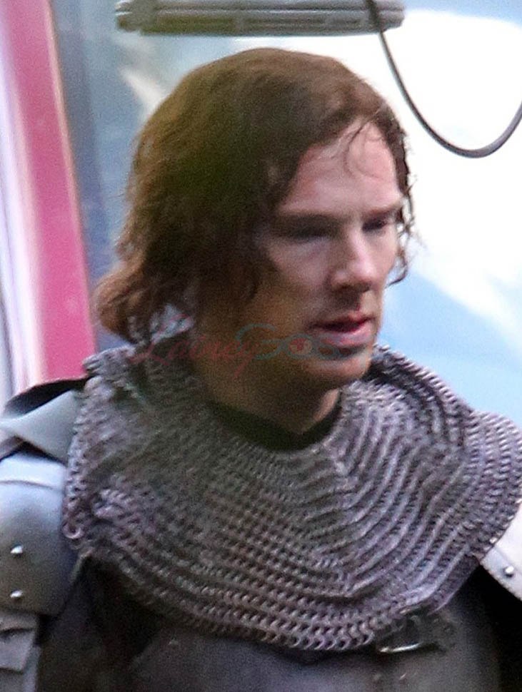 Sarah always talks about his voice. Cumberbatch fans love the voice. And now the voice is doing Shakespeare. With his hair longer and wavy and wet. Wearing chain mail.