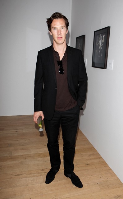 The Serpentine Gallery Summer Party is happening tonight in London. Benedict Cumberbatch showed up because he’s arty and English. Sarah from Cinesnark was mad at me a couple of weeks ago after I posted pictures - click here if you missed them - of Bendy’s bare feet at a fashion show. She keeps calling me a Crush Killer. Sorry. But why is he agreeing to take his shoes off and saunter down a runway in a silk robe with a tumbler in his hand?