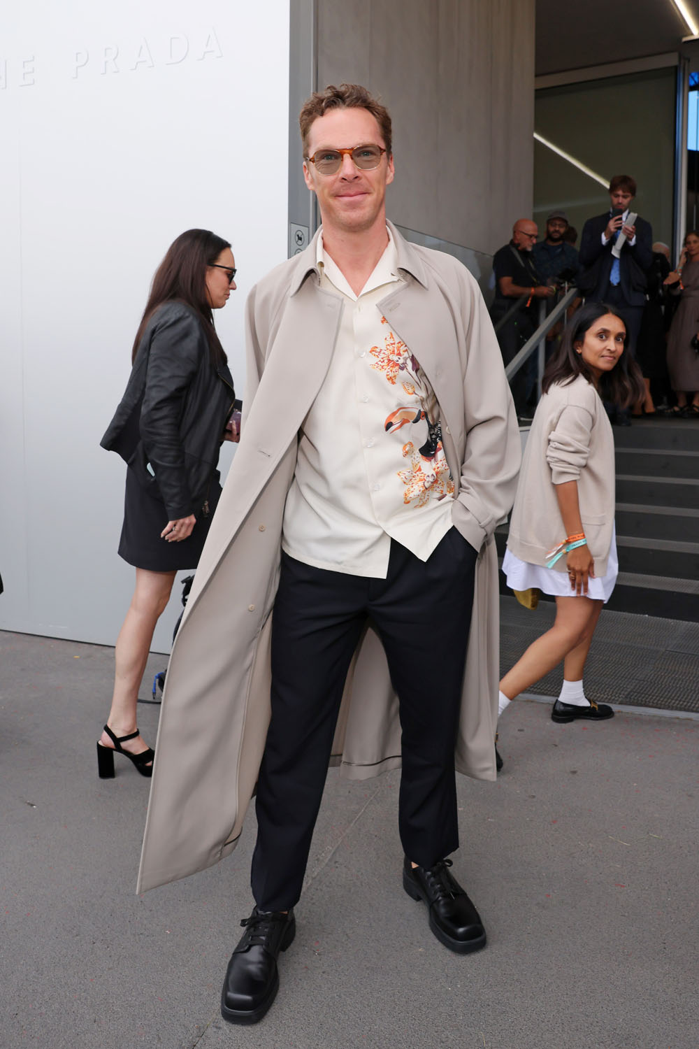 It’s fashion week in Milan, so that’s where all the celebrities are right now. The Prada show brought out some big names, including Hunter Schafer—obsessed with her chunky shoes—Amanda Gorman, Edward Enninful, Rosalía, Letitia Wright, Emma Watson, Scarlett Johansson—with the worst LBD on display at this event—and… Benedict Cumberbatch.