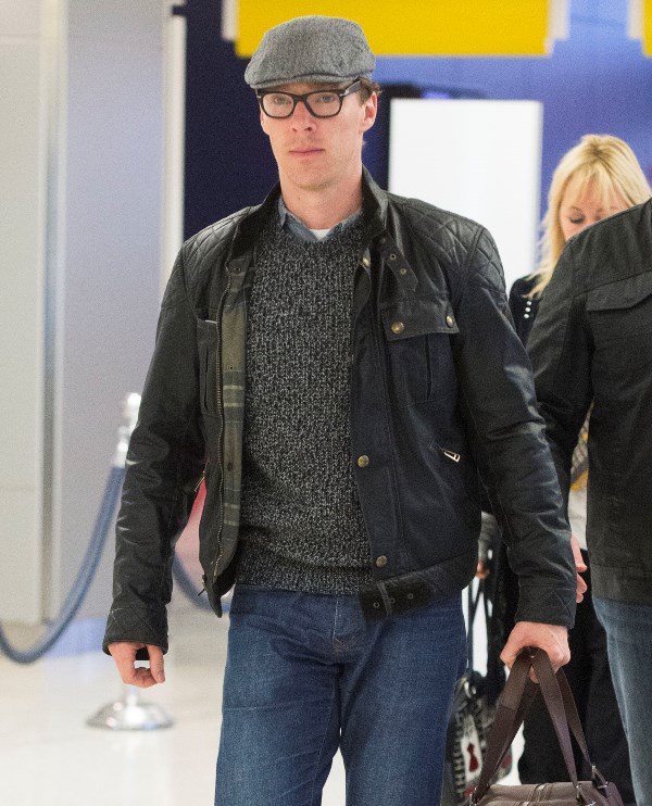 Benedict Cumberbatch was seen at JFK airport in New York today, heading out after several days of intense Oscar campaigning that included his first official red carpet appearance with fiancée Sophie Hunter – click here for a refresher. Over the last couple of days, Cumberbatch has been on American morning television, last night at the CNN Heroes event, and a screening of The Imitation Game for the Academy too. So, basically, the opposite of Michael Fassbender. Cumberbatch isn’t conceding to Michael Keaton, hell no. Cumberbatch is coming at this hard. Harvey Weinstein hasn’t had such a formidable male actor in contention since Colin Firth in The King’s Speech.
