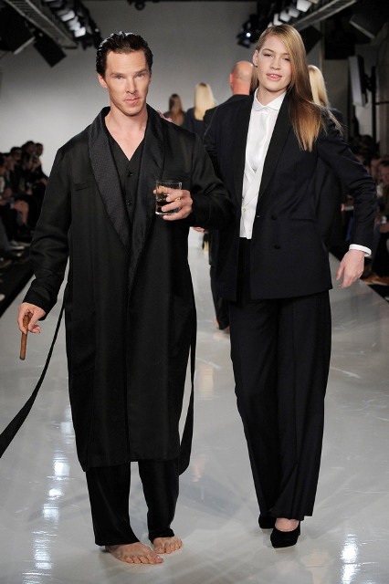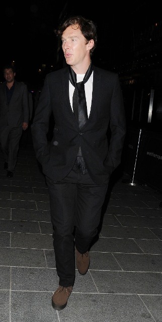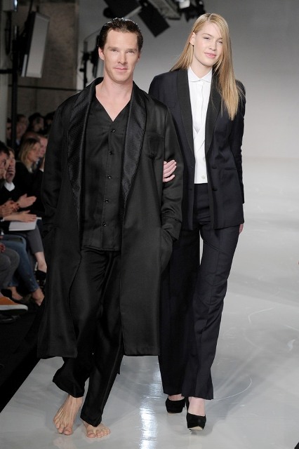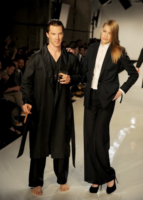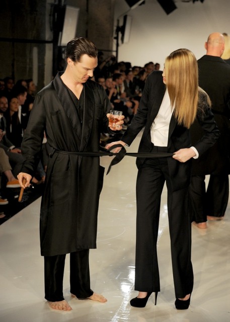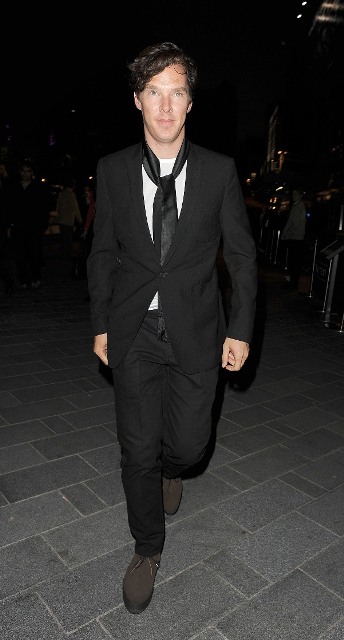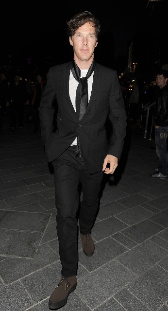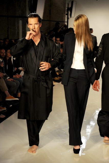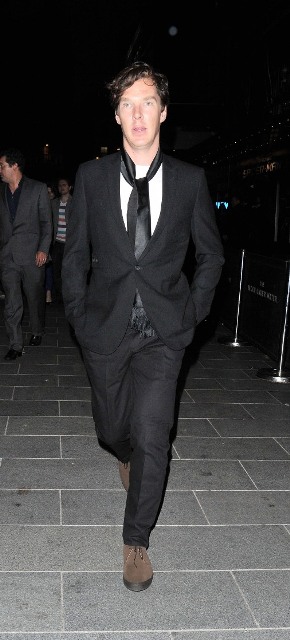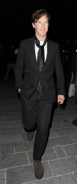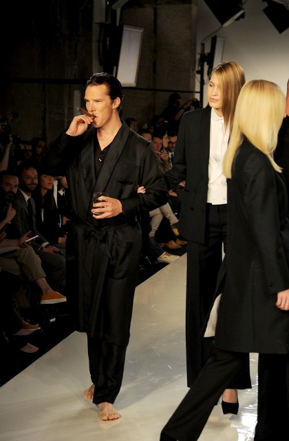 Benedict Cumberbatch as Sherlock was named Best Actor Movie/Miniseries at the Critics’ Choice Awards last night in Beverly Hills. But Bendy (which is a much better nickname for him considering how seemingly elastic his face is, and this serves him well creatively, doesn’t it?) was in England, attending the premiere of The Amazing Spider-Man and didn’t collect his prize. It’s alright Bendy-Hards, it looks like your boy will be making the award show rounds during the season now that he’s getting them horny all over America. The days of Bendy The Obscure are now over. He even does fashion shows!