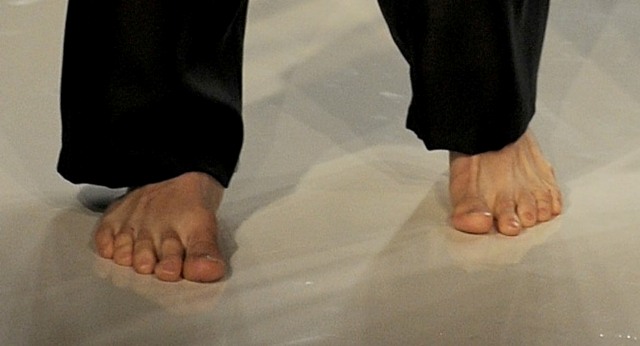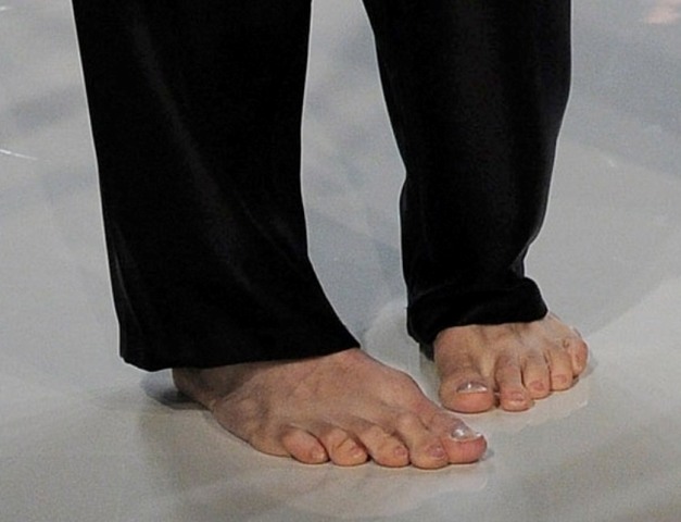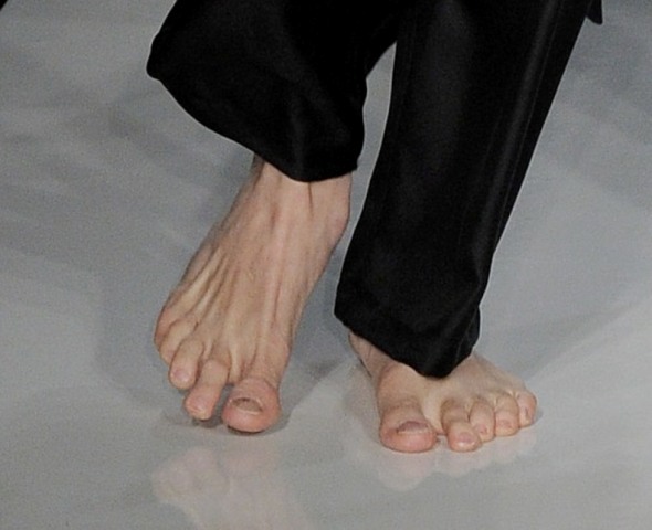 Check him out barefoot on the runway last week for Spencer Hart Spring/Summer 2013.