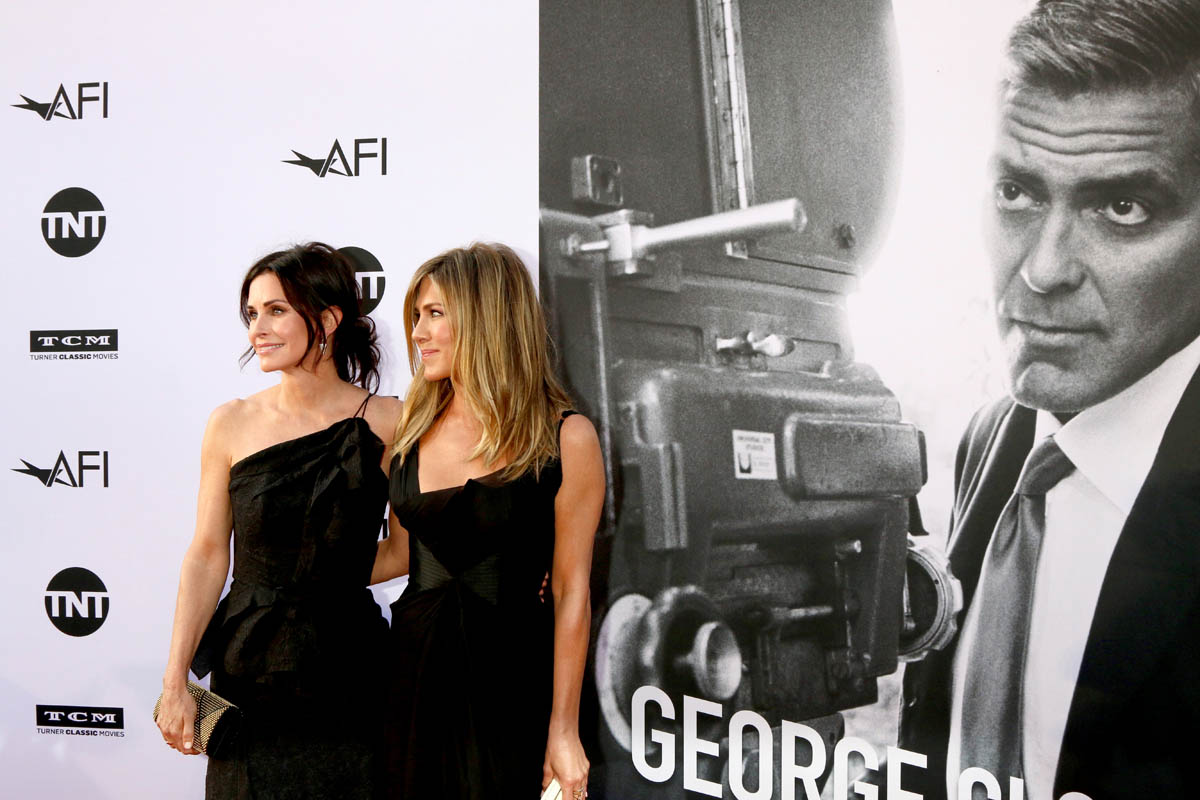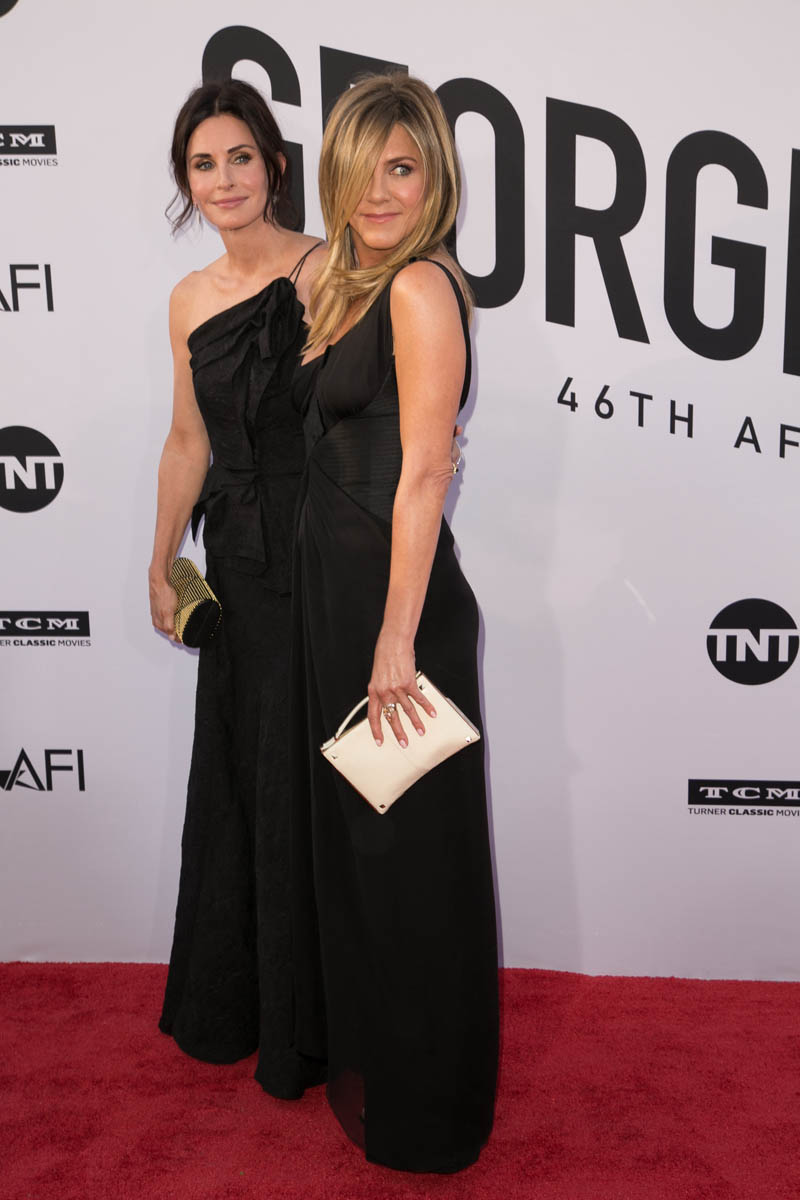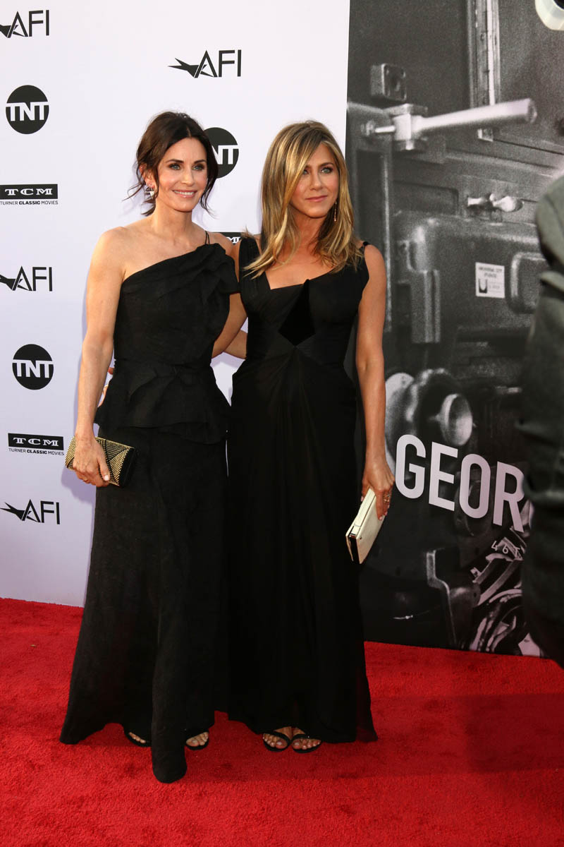 Jennifer Aniston and Courteney Cox walked the red carpet at AFI’s Lifetime Achievement Award Gala together in matching black to support George Clooney. Lainey predicted that George’s big night would bring out the A-List. Jen and Court are the popular girls of the A-list. Hollywood is like high school and they are in the in-crowd. Usually, I would want to roll my eyes at pretty popular girls in matching outfits just like I did in high school but again, their friendship is too endearing.