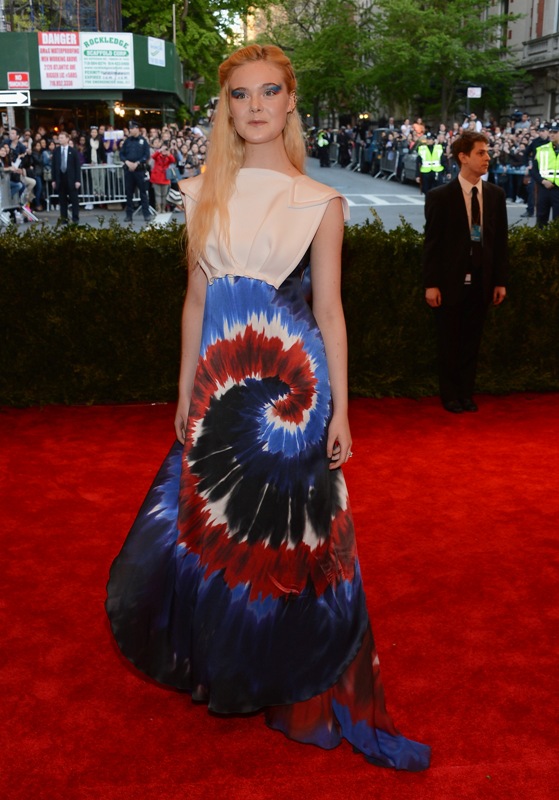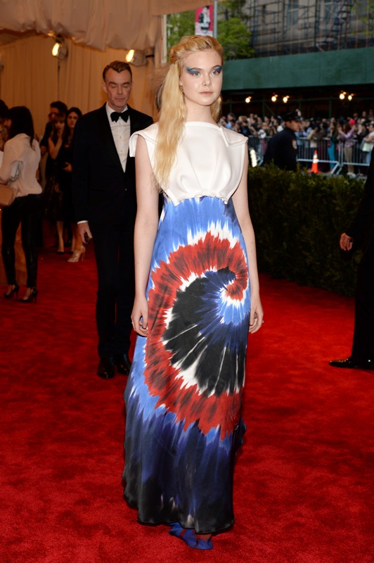As for Elle, who is 15, and we’ll just conveniently side-step the issue of why a 15 year old is at this event, at least she’s never dressed for 30. And the Mulleavy sisters have styled her perfectly in a piece that allows her to express her youth and protect it too while still showcasing their creativity. Why shouldn’t a teenager at the ball make her eyes into rainbows?