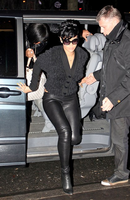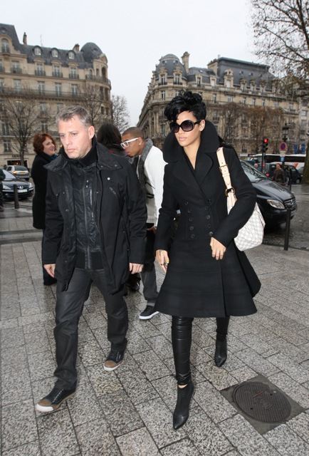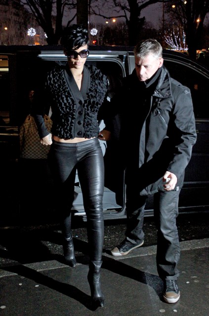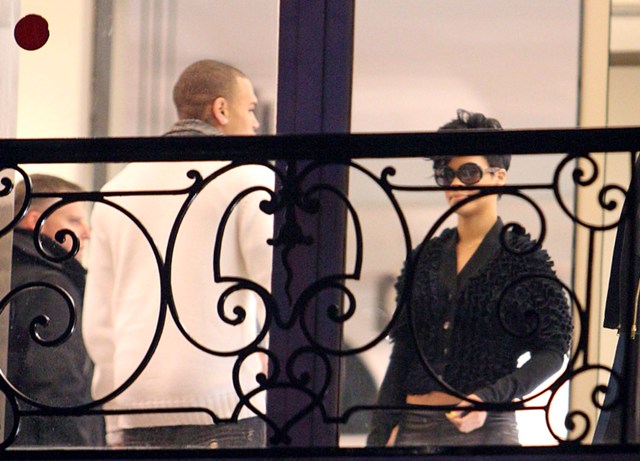 Here they are in Paris today, pulling up at the Louis Vuitton on the Champs Elysees for some shopping in advance of her appearance on Star Academy. Fun, see?