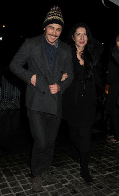 And all the other nights he spends with the Real Creative. People like Marina Abramovic, with whom he attended last week’s premiere of Somewhere in New York. Franco has called Abramovic the “grandmother of performance art”, and if you recall, last year he wrote a piece for the Wall Street Journal on performance art after, I don’t know, eating a gold dusted dessert with Abramovic on camera. Click here to read the article and watch the video. In the context of I WENT TO FILM SCHOOL, it’s more than a little up-his-own-assy.