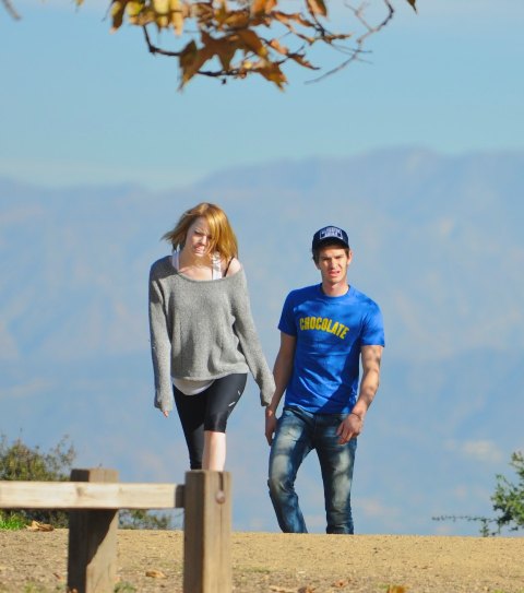 With Emma Stone and Andrew Garfield I’m happy about them on a pure level, not just for gossip’s sake, although that’s great too, but in a fangirl sense where I just want them to be them, together, and so well matched and adorable. I’ll admit, at the beginning, it was a liiiiiitle too twee for my taste, considering the whole Spider-Man business. But look at them, photographed the other day, hugging on a hike, so young and so full of promise, two of the brightest stars of the industry, relatively drama free, and, let’s face it, really nice to look at.