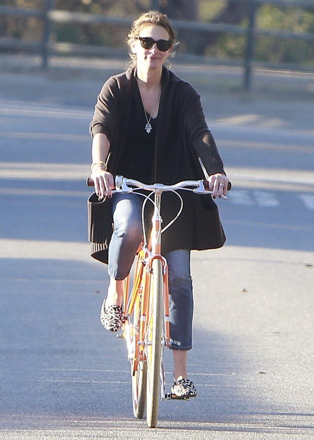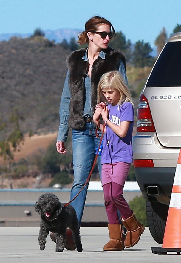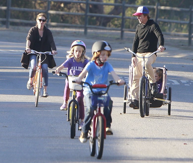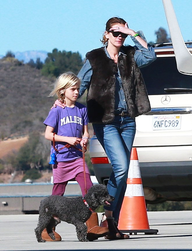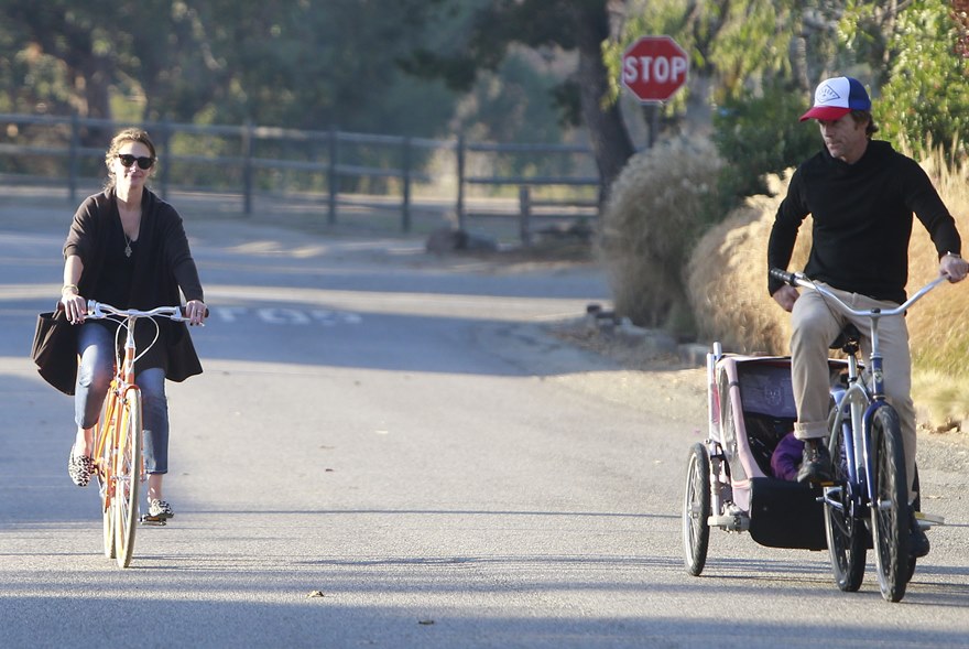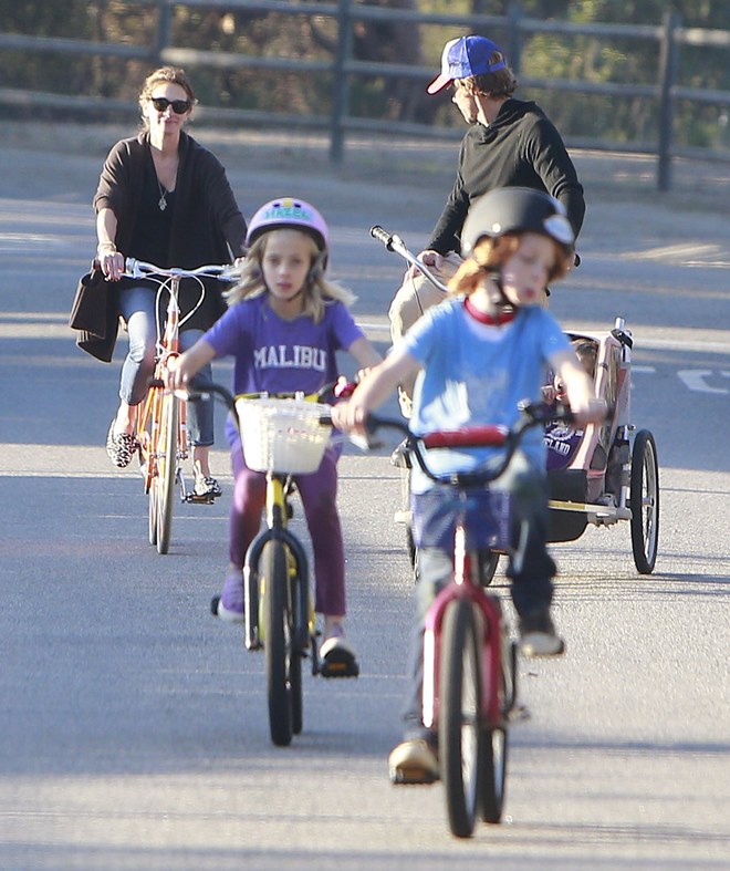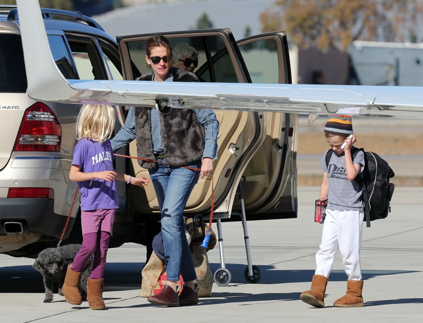 Attached – Julia with her husband Danny Moder and their three children out for a bike ride in Malibu on the weekend and boarding a private plane (Hawaii perhaps?) to begin their Christmas holiday.